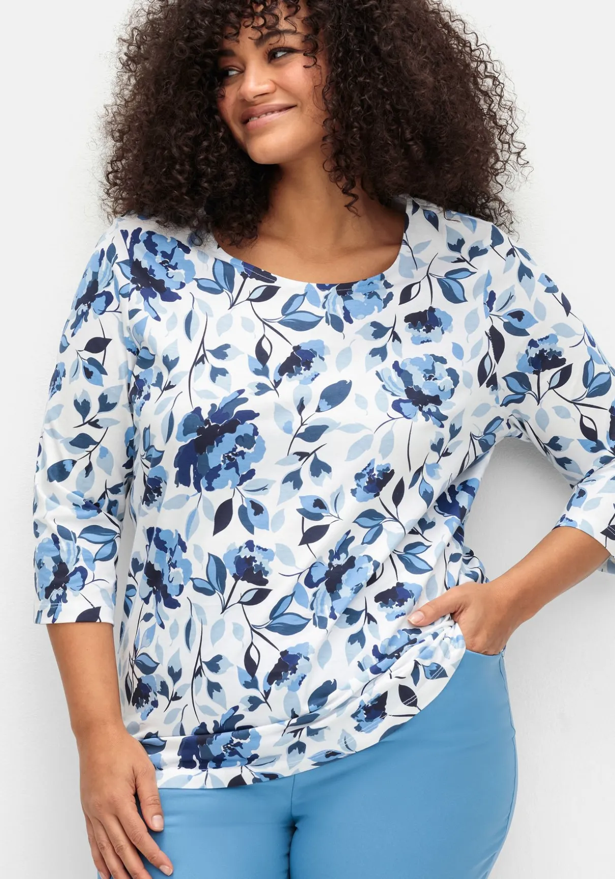 Jerseyshirt mit Rundhalsausschnitt. Der farbharmonische Blumenprint verleiht dem Look eine frische Note. 3/4-lange Ärmel sorgen für ein lässiges Tragegefühl.