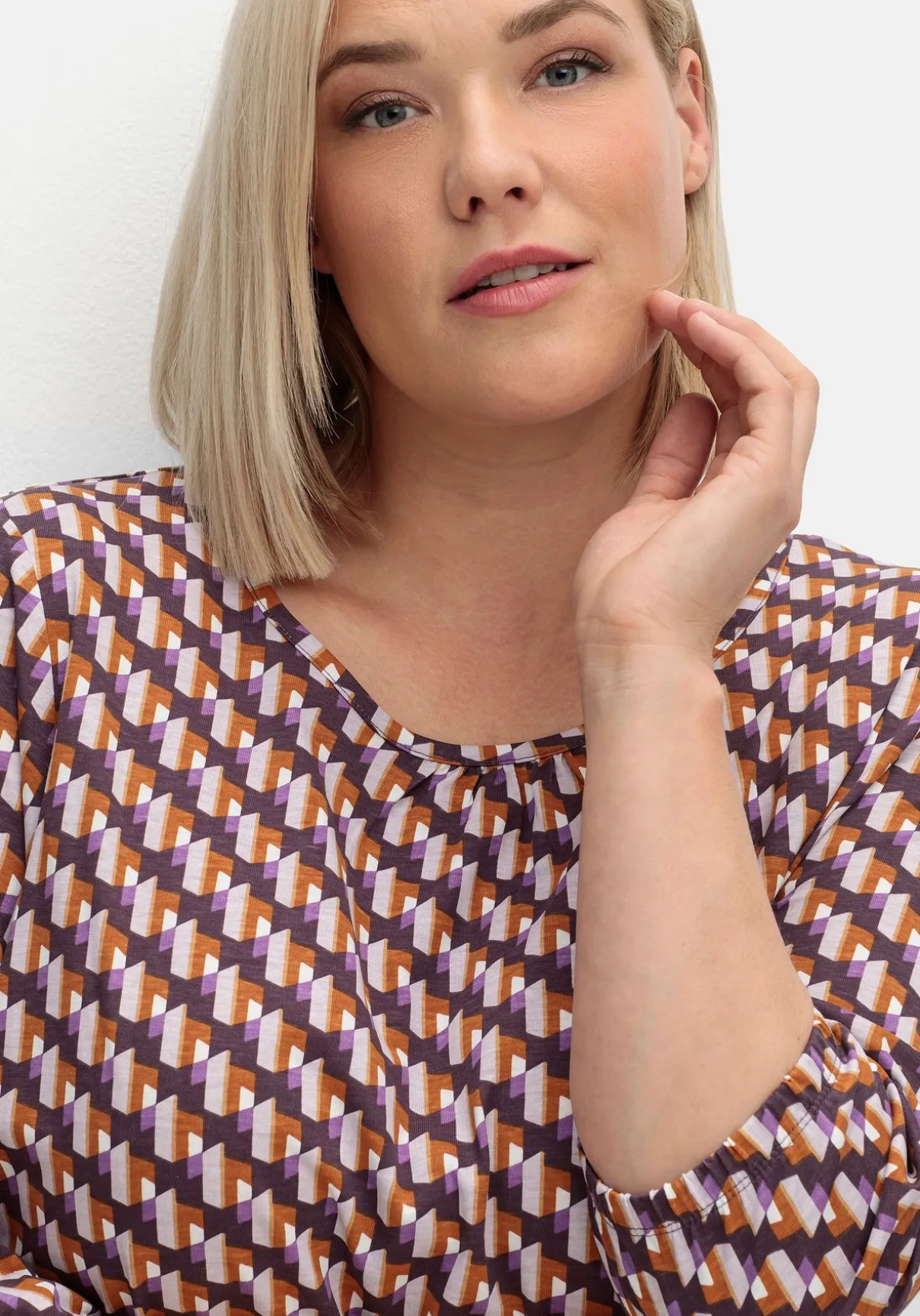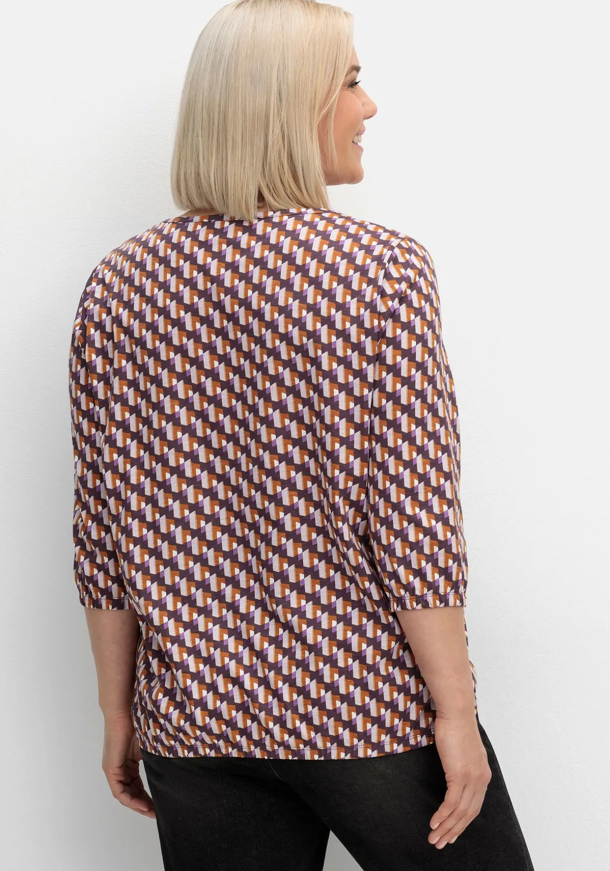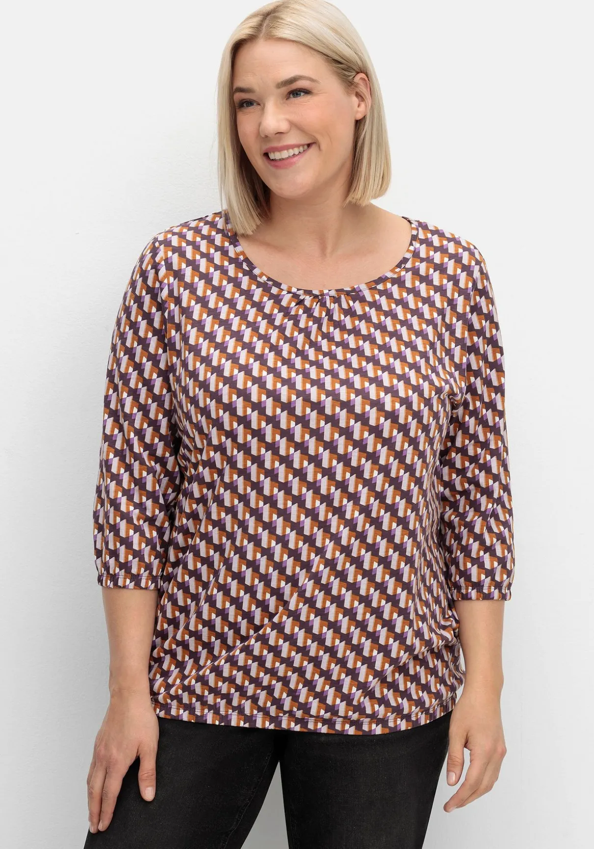 Shirt mit 3/4-Arm. Durch den grafischen Print erhält das Shirt einen modernen, trendstarken Look. Die 3/4-langen Ärmel enden mit einem elastischen Abschluss, auch am Saum ist ein Gummizug eingearbeitet. Ein paspelierter Rundhalsausschnitt ergänzt den Fit.