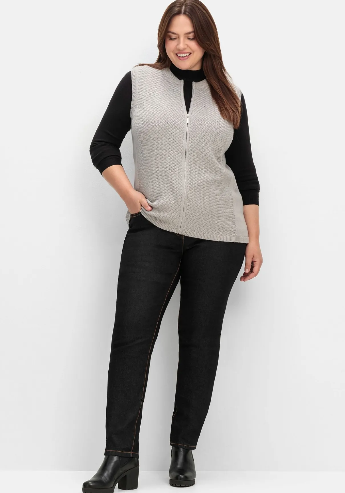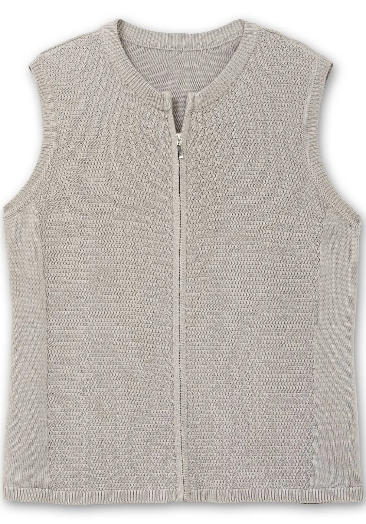 Strickweste mit Rundhalsausschnitt. Die ärmellose Weste zeigt sich im Vorderteil mit einem dezenten Strickmuster, der durchgehende Reißverschluss verleiht ihr eine sportive Optik. Der gerippte Saum ergänzt den Look. Ein vielseitiger Kombipartner für vielfältige Layerlooks.