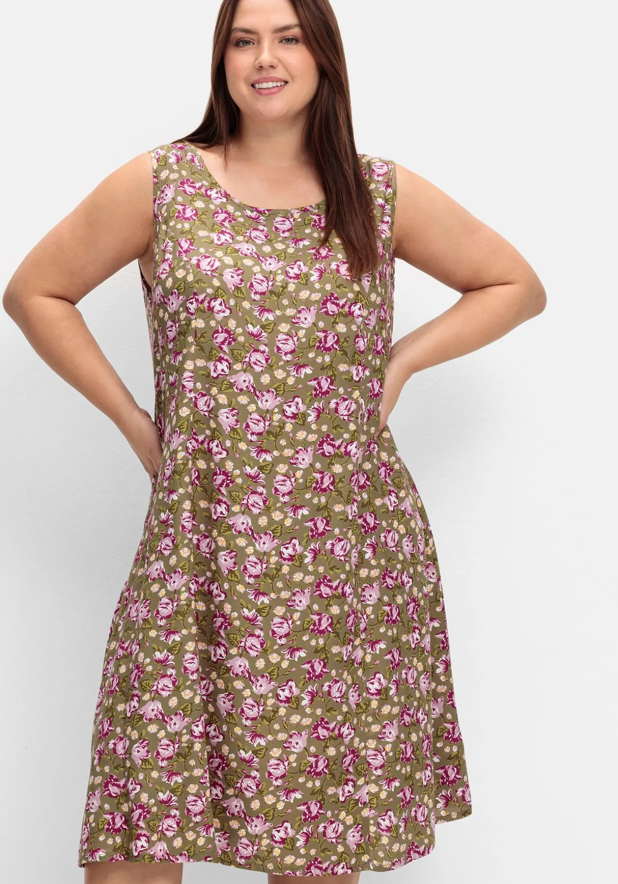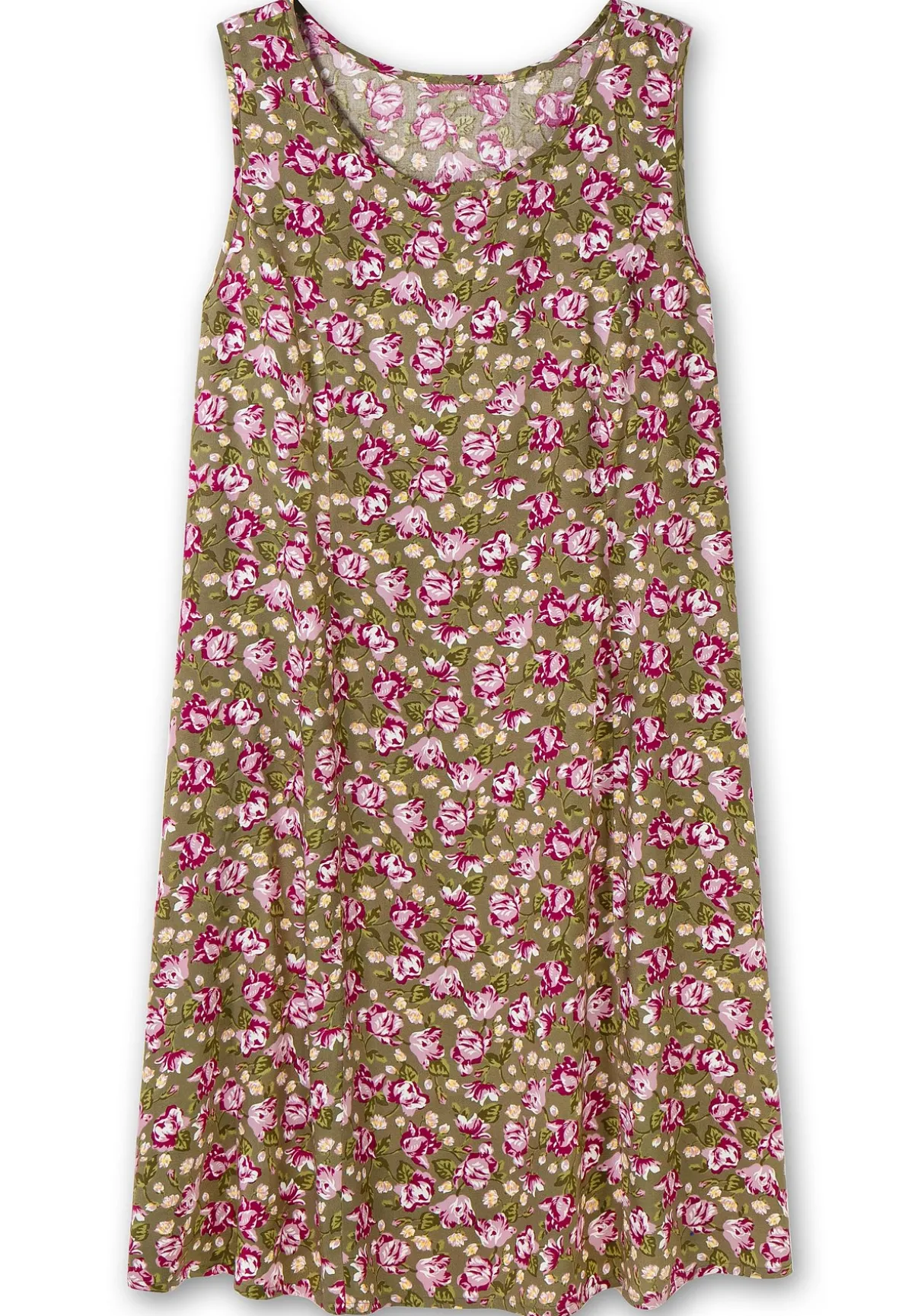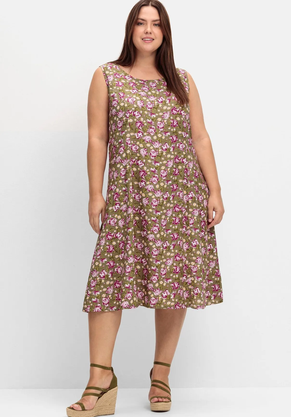 Kleid in ärmelloser Form. Durch den hübschen Blumenprint und den knielangen Schnitt wird es zum entspannten Sommerbegleiter. Das Kleid ist mit Rundhalsausschnitt gearbeitet, Wiener Nähte sorgen für eine schöne Passform.