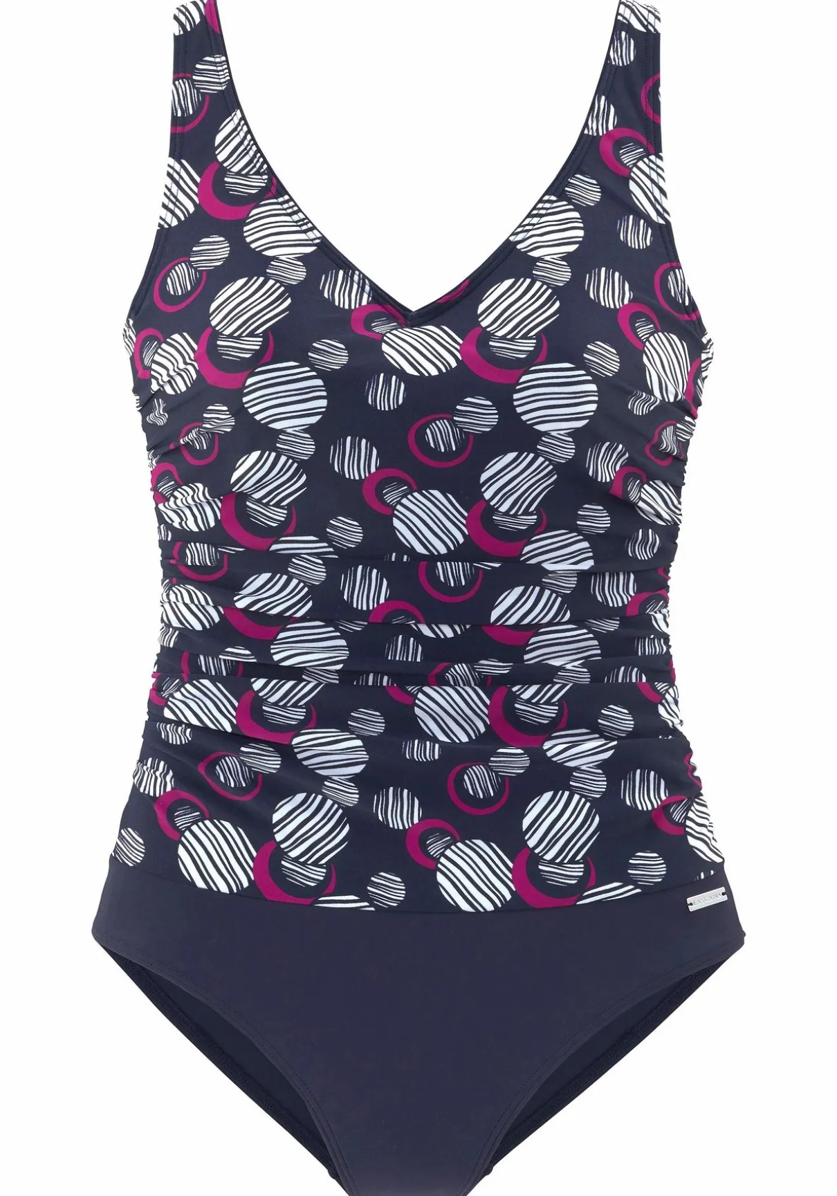 Bademoden von LASCANA im aktuellen Design mit verschiedenen Kreisen. Mit eingearbeiteten Bügeln, Büstenfutter, Unterbrustgummi und Shaping-Einsatz vorn für guten Halt und eine schöne Silhouette. Verstellbare Träger.