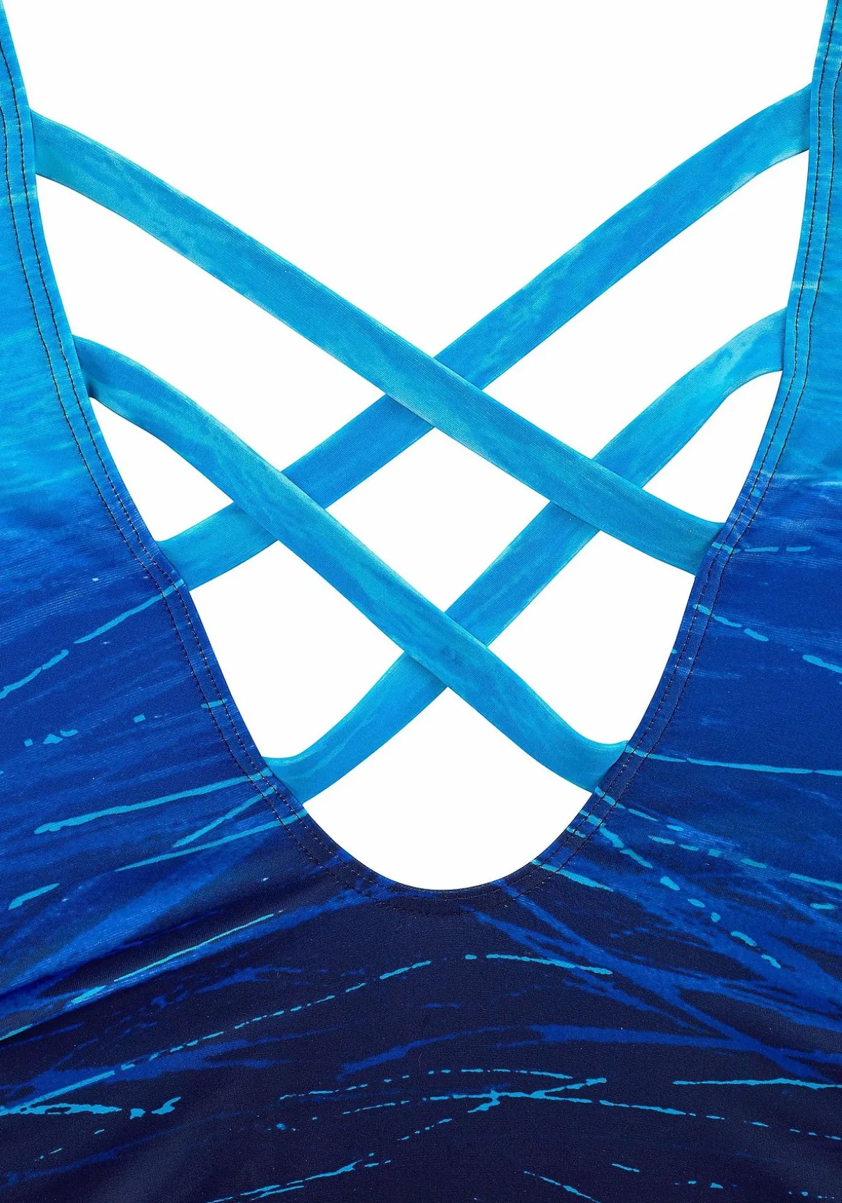 Badanzug von Lascana mit modischem Farbverlauf. Stylische Rückenlösung mit im Rücken gekreuzten Bändern. Eingearbeitete Softcups und Unterbrustgummi sorgen für einen guten Halt. Der Shaping-Einsatz vorn zaubert optisch eine schlanke Silhouette. Obermaterial: 80% Polyamid, 20% Elasthan. Miedereinsatz: 85% Polyamid, 15% Elasthan. Futter: 100% Polyamid. Wattierung: 100% Polyester.