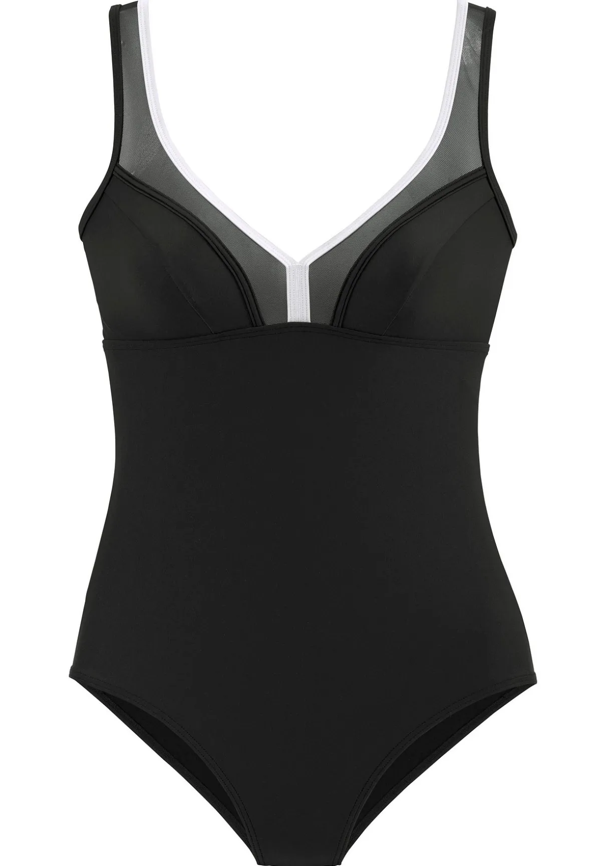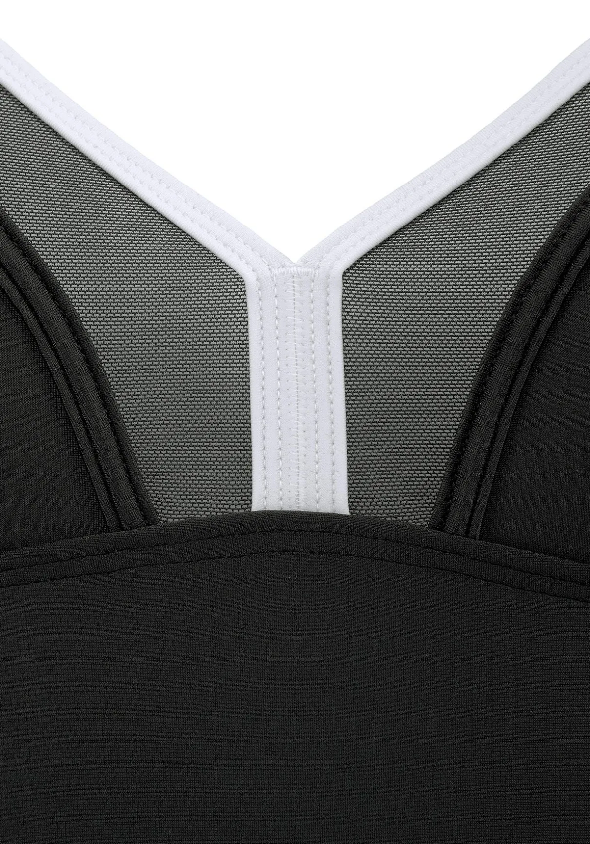Badeanzug von Lascana mit Shaping-Einsatz vorn. Mit transparenten Mesh-Einsätzen und kontrastfarbenen Paspeln. Absolut trendiger Look. Obermaterial: 80% Polyamid, 20% Elasthan. Miedereinsatz: 85% Polyamid, 15% Elasthan. Futter: 100% Polyamid.