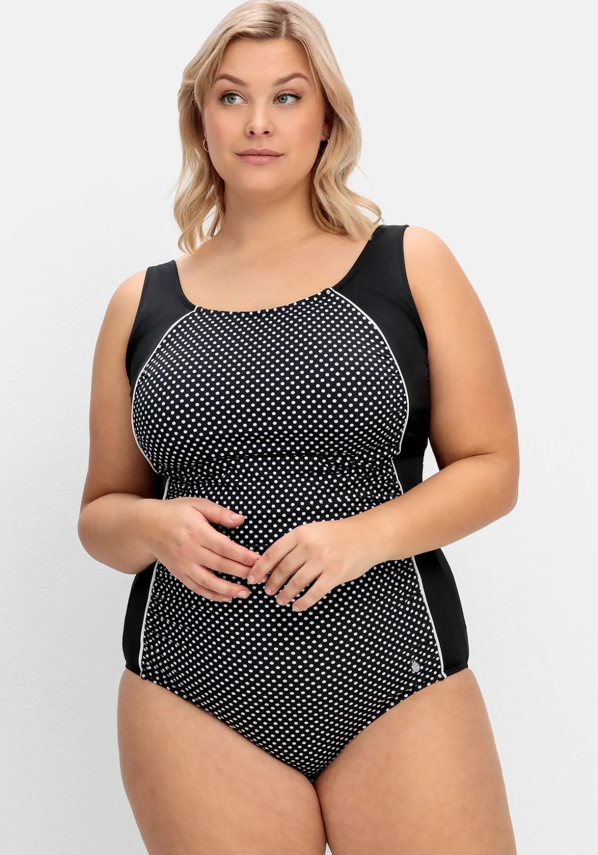 In figurnaher Form. Wattierte Softcups, ein Unterbrustgummi und verstellbare Träger sorgen für Tragekomfort. Der vorn eingearbeitete Powernetz-Einsatz formt schmeichelnd die Bauchpartie.