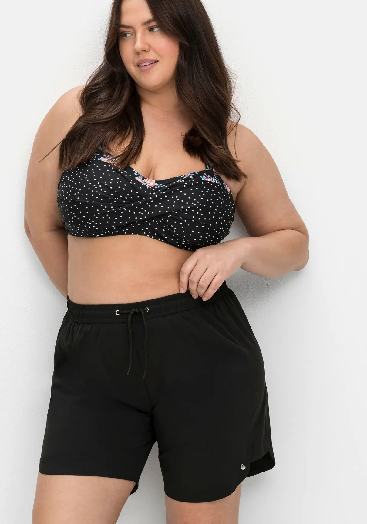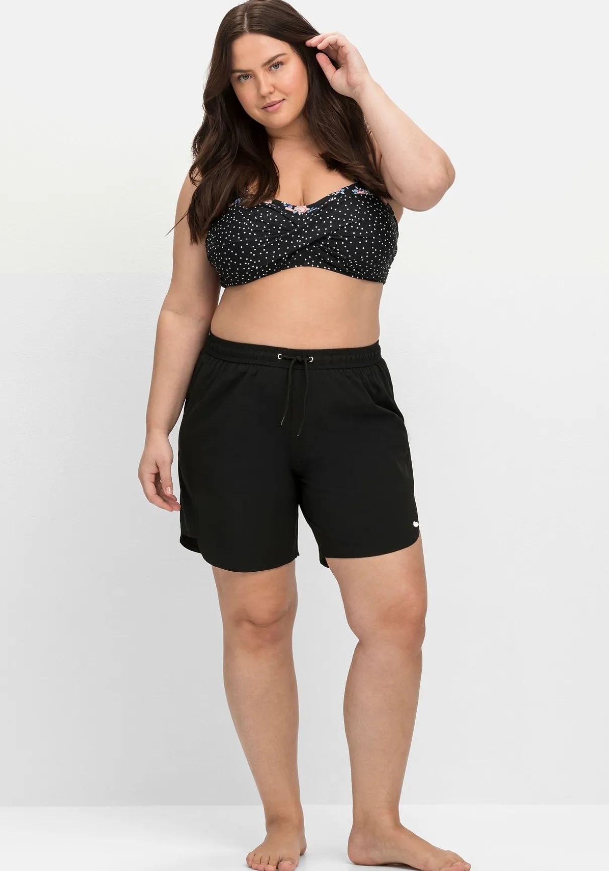 Badehose aus Microfaser. Die sportiven Badeshorts sind mit einem elastischen Bündchen und Bindeband gearbeitet, seitlich ist das Bein abgerundet und höher geschnitten. Besonders praktisch ist der integrierte Innenslip. Dank des Mix & Match-Charakters lässt sich diese Hose wunderbar mit anderen Teilen aus der sheego Badekollektion kombinieren.