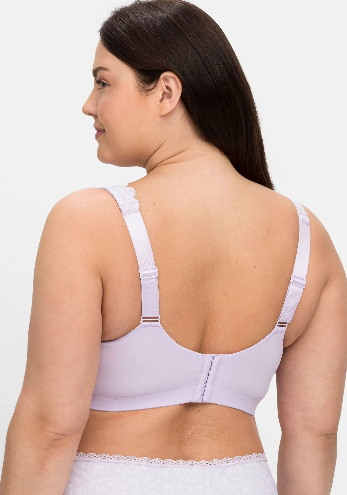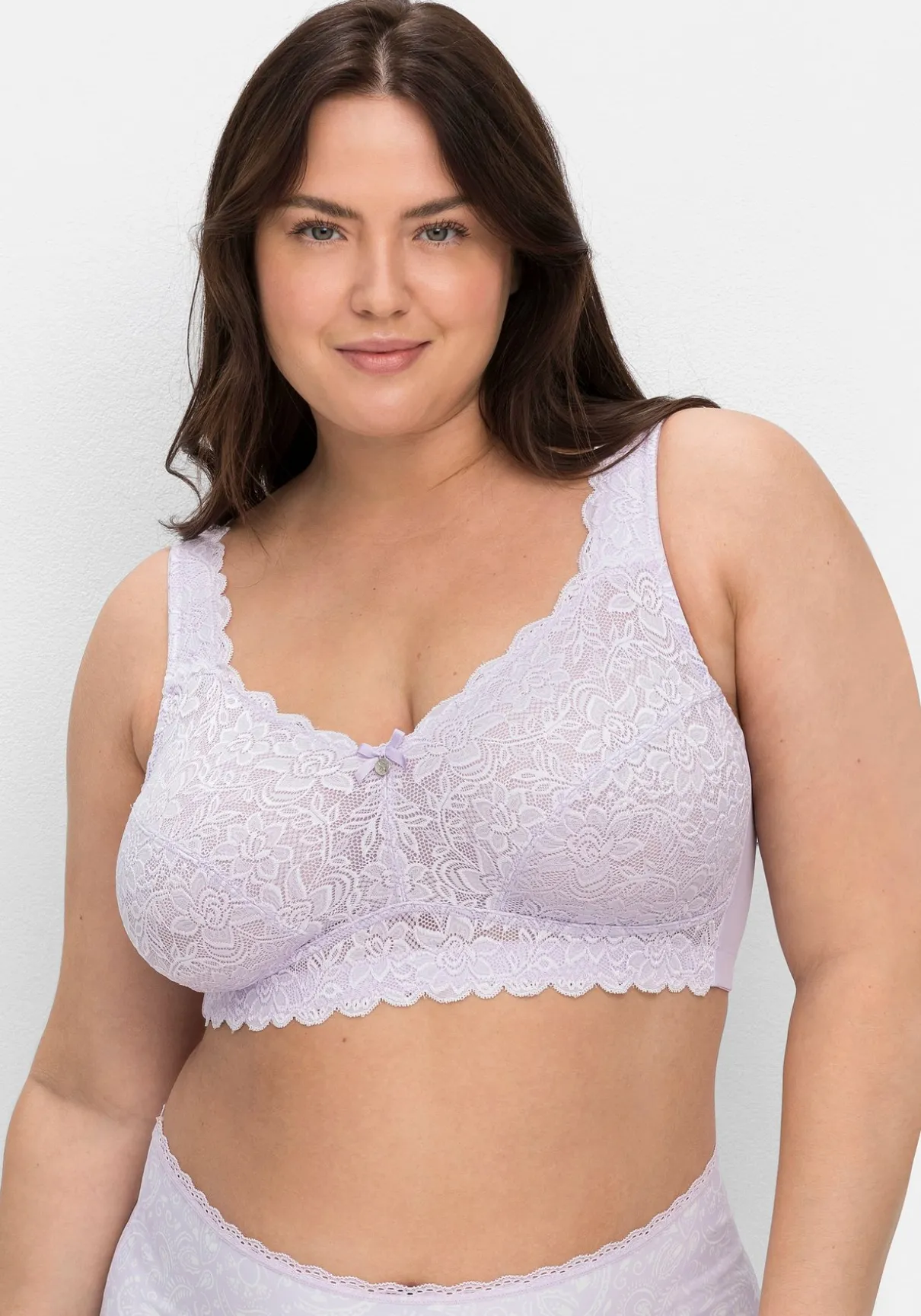 BH in bügelloser Form. Die Obercups sind leicht transparent gehalten, wodurch sich die florale Vollspitze verführerisch abzeichnet. Dazu überzeugt der hohe Tragekomfort: Die Cups decken die Brust komplett ab, der hohe Mittelsteg gibt perfekten Halt, die breiten Träger schneiden nicht ein. Mit dem breiten Unterbrustgummi wird zusätzlich die Brust gestützt und gleichzeitig entlastet.