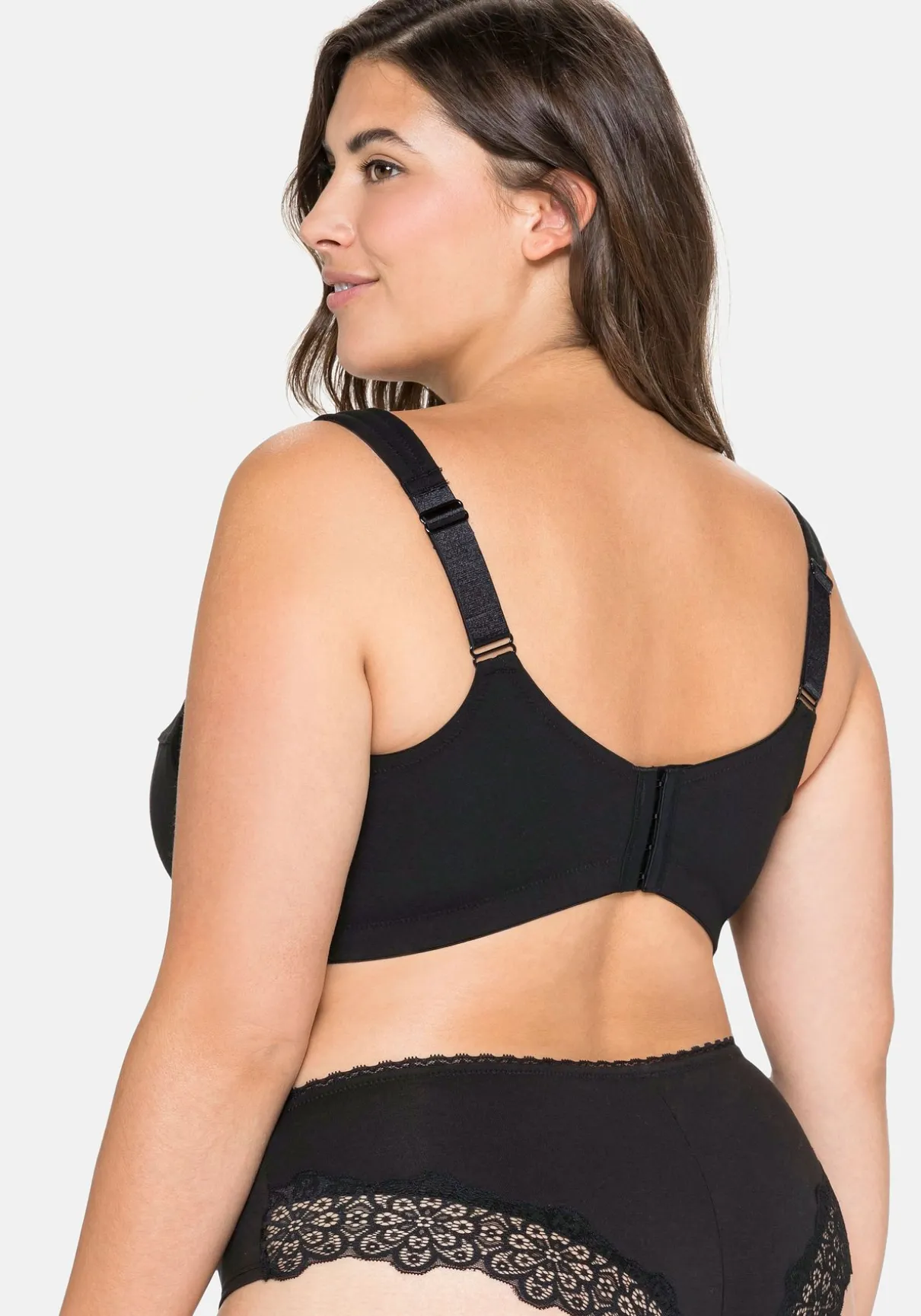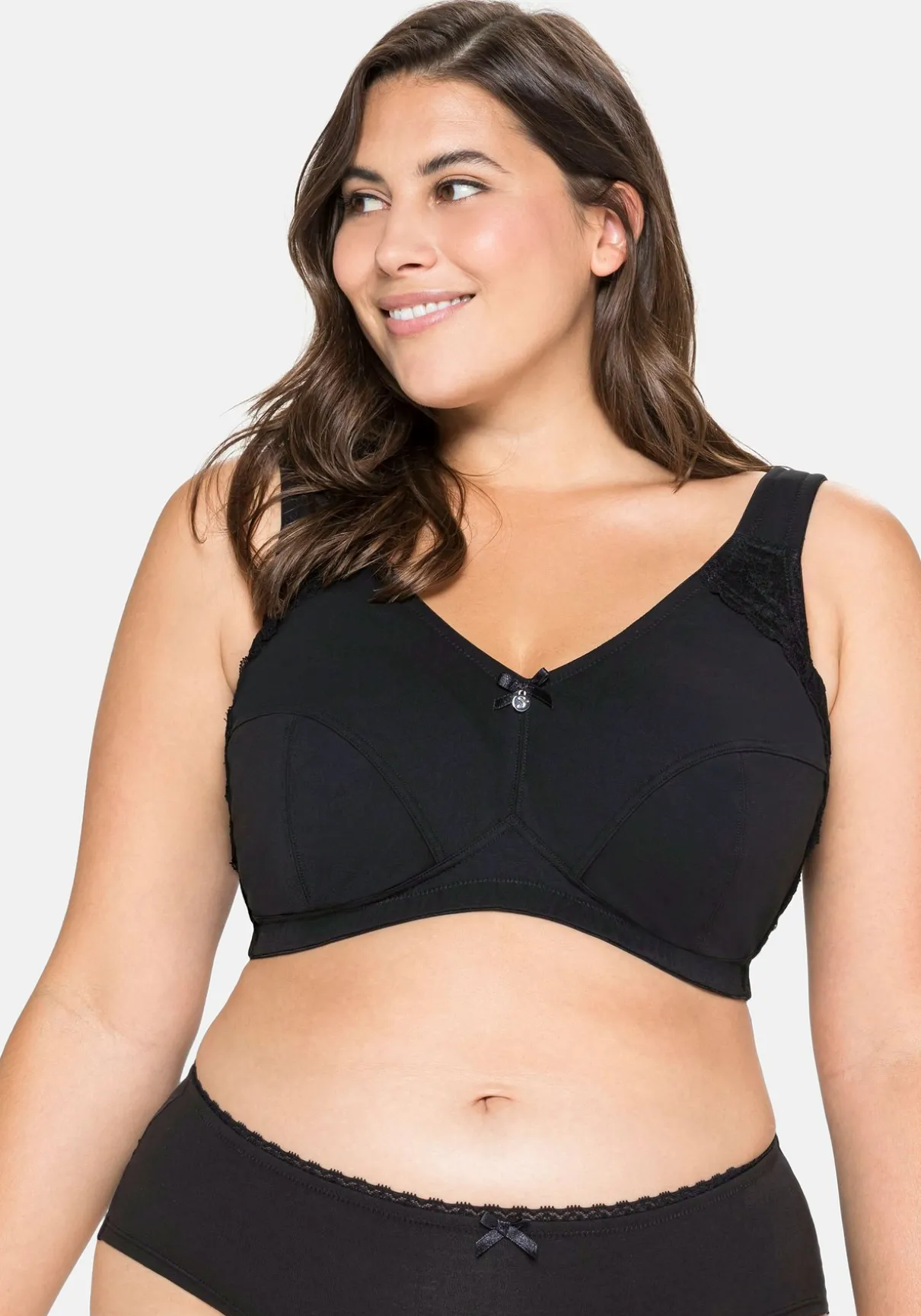 BH in bügelloser Form. Für eine romantische Note sorgt der seitliche Spitzenbesatz. Besonders tragefreundlich sind die elastischen, längenverstellbaren Träger gearbeitet, die dank der Wattierung nicht einschneiden. Für einen optimalen Sitz sorgt der eingearbeitete Unterbrustgummi, auch die abdeckende Schnittform gibt zuverlässigen Halt und Komfort. Mit weitenverstellbarem Rückenverschluss.