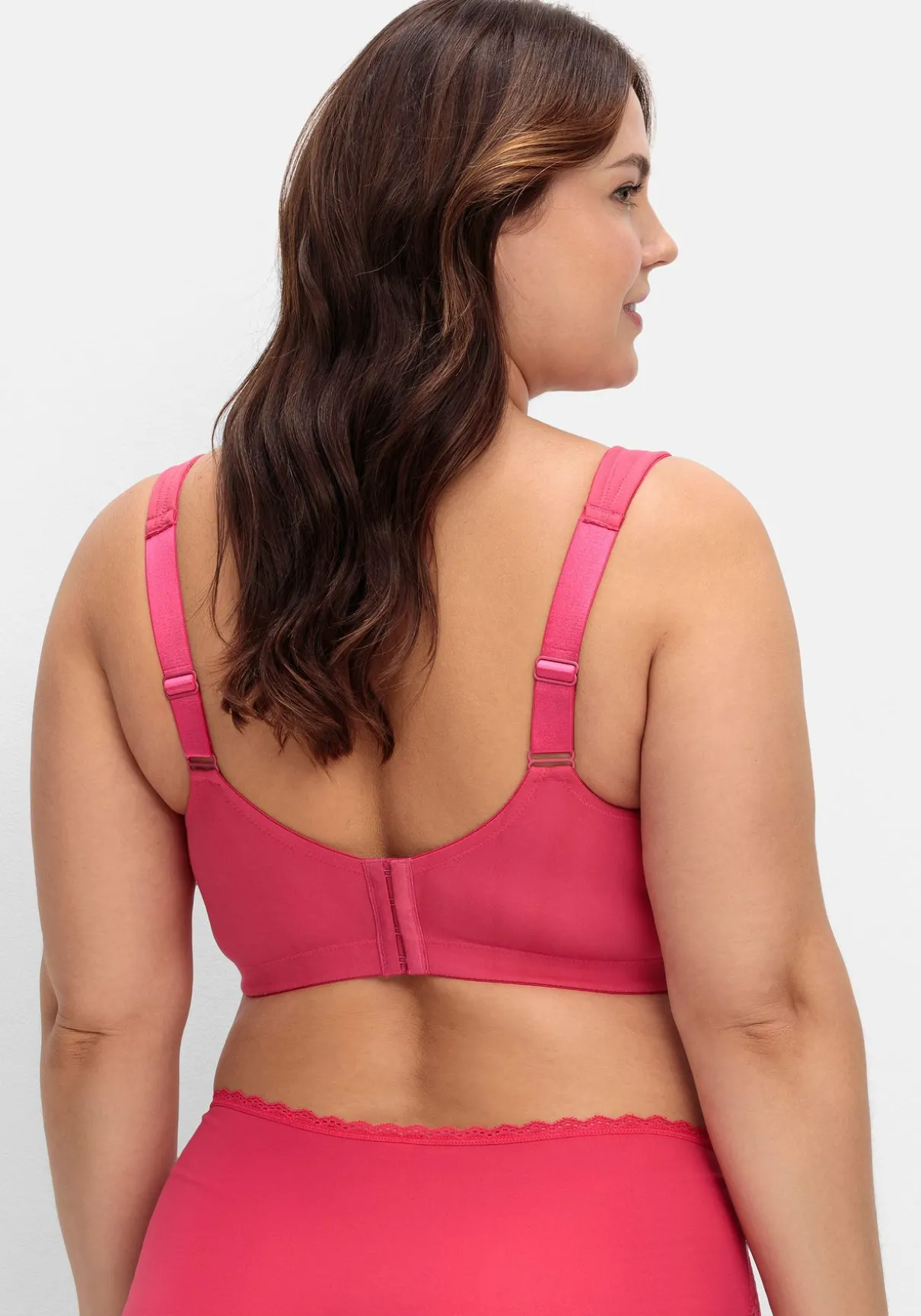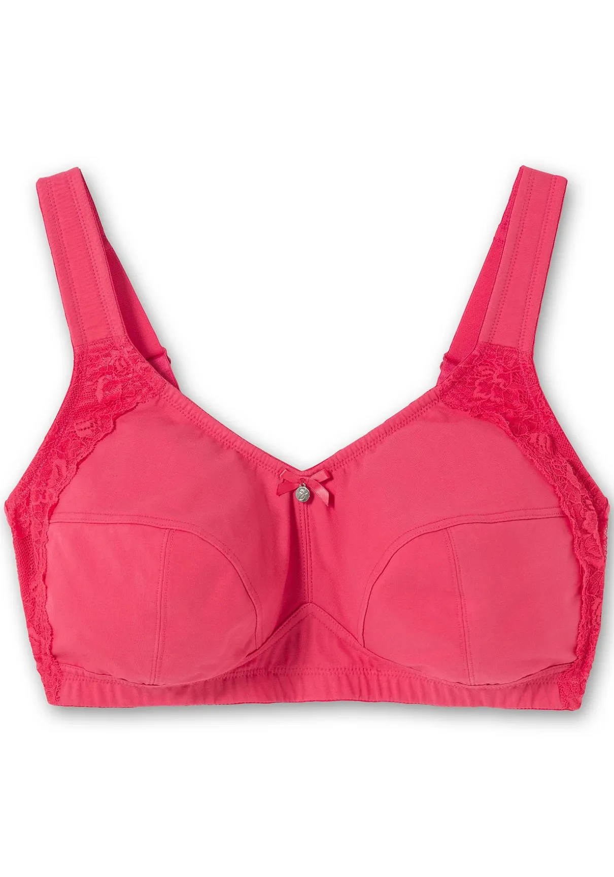 BH in bügelloser Form. Für eine romantische Note sorgt der seitliche Spitzenbesatz. Besonders tragefreundlich sind die elastischen, längenverstellbaren Träger gearbeitet, die dank der Wattierung nicht einschneiden. Für einen optimalen Sitz sorgt der eingearbeitete Unterbrustgummi, auch die abdeckende Schnittform gibt zuverlässigen Halt und Komfort. Mit weitenverstellbarem Rückenverschluss.