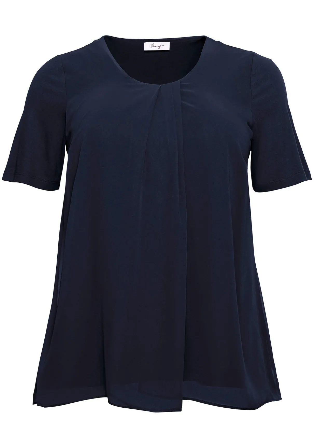 Blusenshirt im Lagenlook. Das weit und offen fallende Oberteil ist mit dekorativen Falten am Ausschnitt versehen.