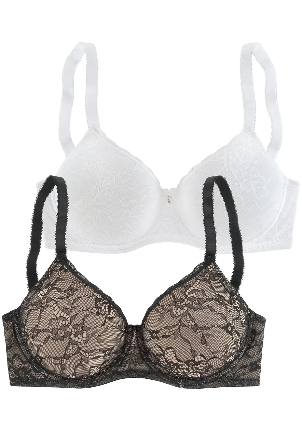 Bügel-BH aus floraler Spitze mit Zierschleife und Glitzeraccessoire. Nahtlose Cups sind unterlegt. Verstellbare Träger und Rückenverschluss. Sexy Dessous. Spitzen-Dessous. Romantische Dessous. Verspielte Dessous. Aus 84% Polyamid, 16% Elasthan.