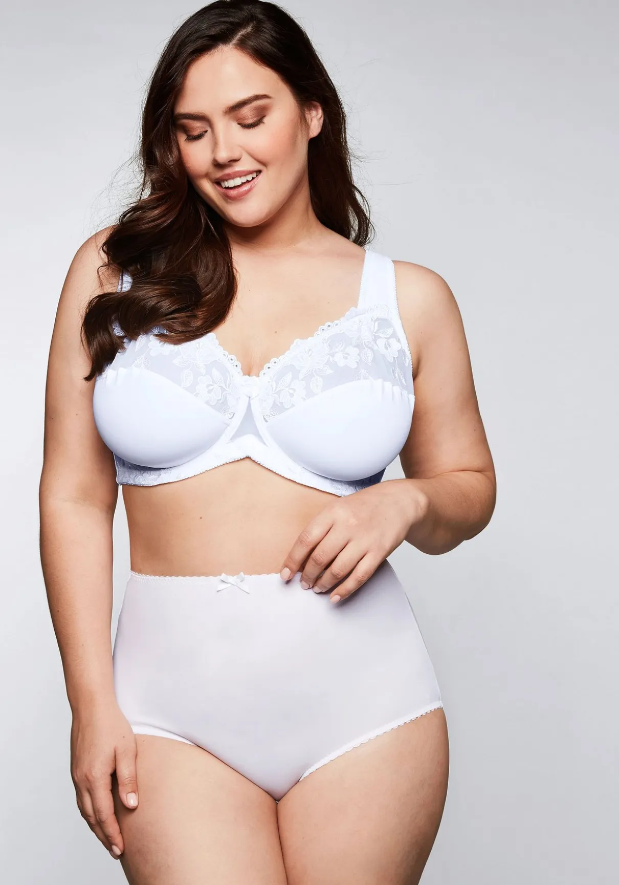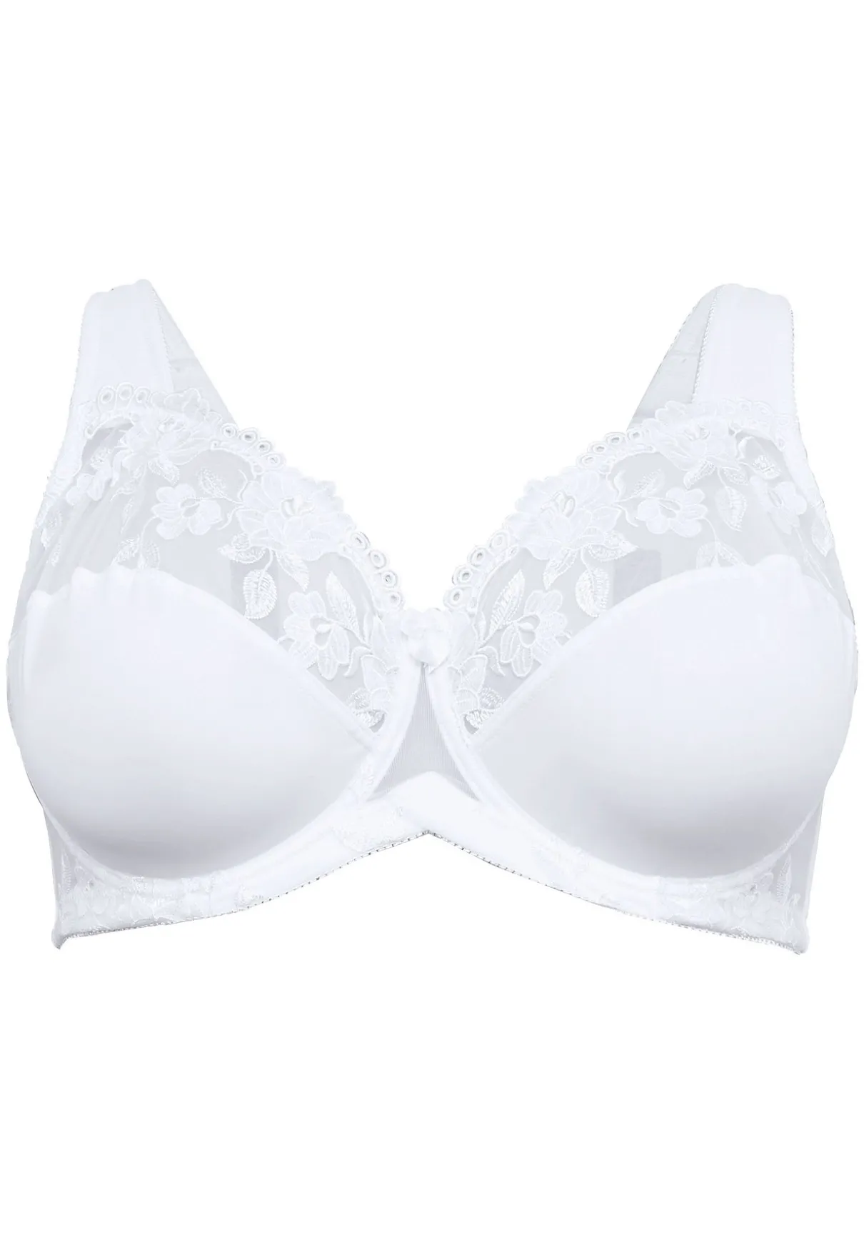 Dieser Bügel-BH wird dank der besonderen Kombination aus verschiedenen, leicht transparenten Spitzen zum verspielten Hingucker. Seitenstützen und breite, leicht gefütterte Träger sorgen dabei für zuverlässigen Halt und optimalen Tragekomfort. Rückenverschluss und Träger sind verstellbar.