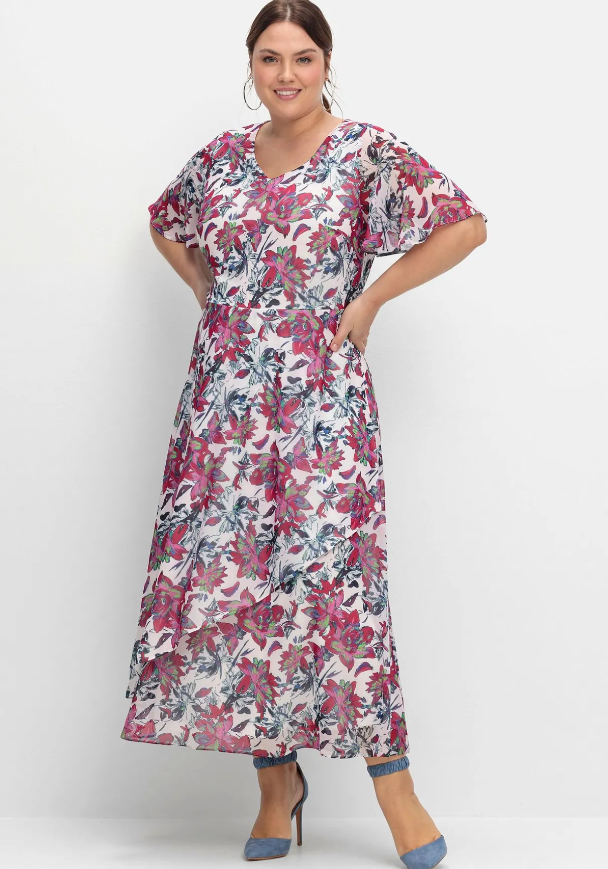 Der zarte, leicht transparente Chiffonstoff ist pflegeleicht. Durch das Unterkleid wird der Style blickdicht.