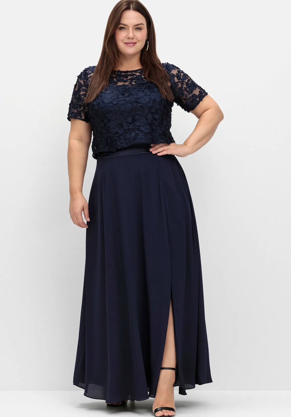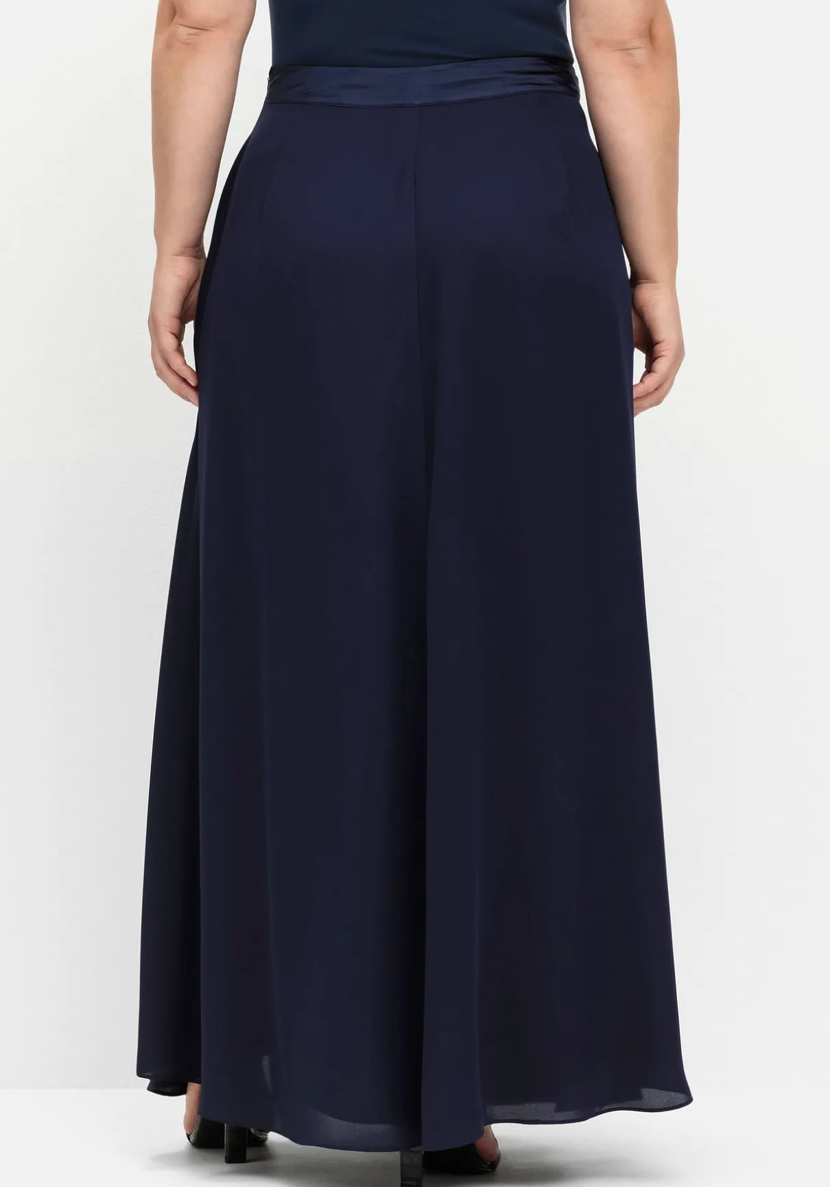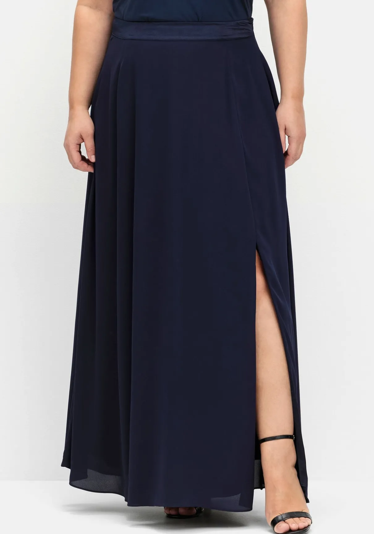 Chiffonrock in Maxilänge, mit seitlichem Schlitz. Der weit schwingende Rock ist nach unten leicht ausgestellt geschnitten, der hohe Schlitz sorgt für Raffinesse und gleichzeitig optimalen Tragekomfort. Auch der elastische Formbund in edler Satinoptik sitzt bequem, dazu kommt ein nahtfeiner seitlicher Reißverschluss. So entsteht ein eleganter Stylingpartner, der perfekt auf unsere festlichen Oberteile abgestimmt ist und in der Farbe Offwhite perfekt zu den sheego Hochzeits-Kombinationen passt.