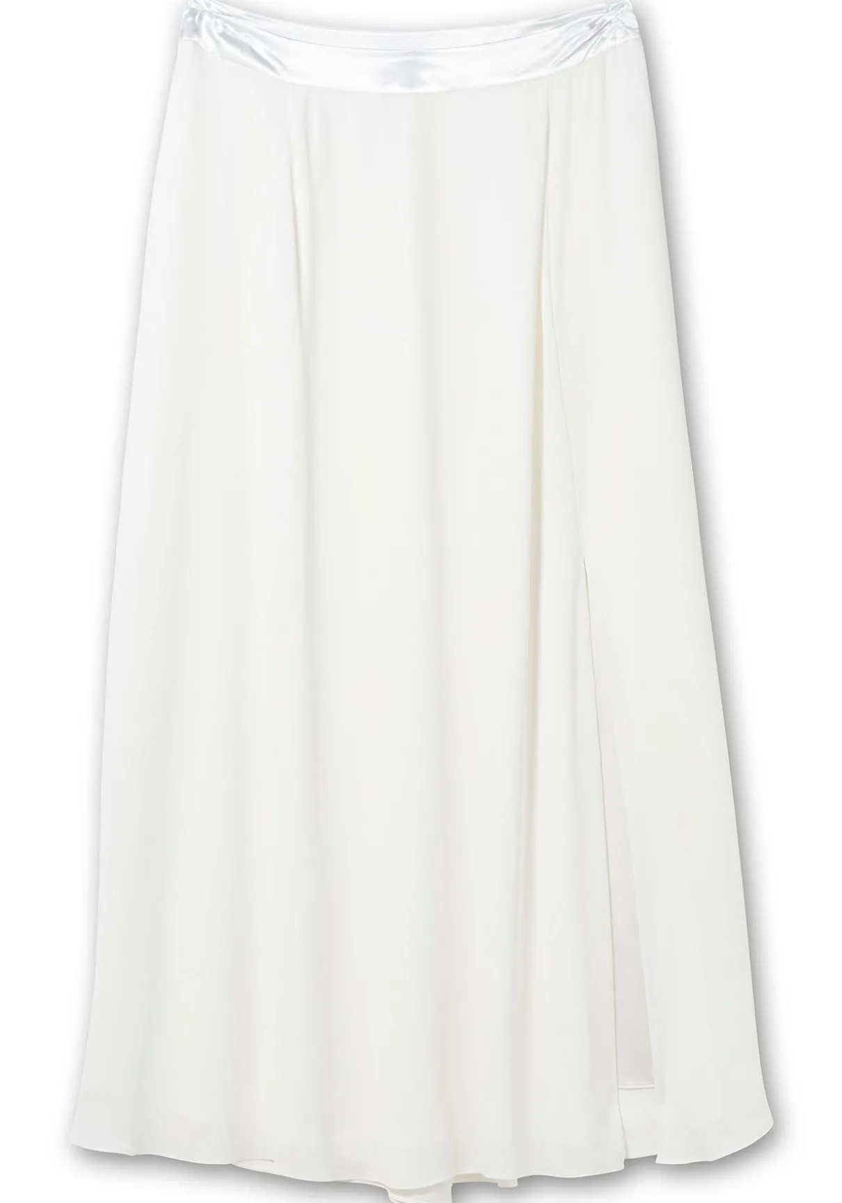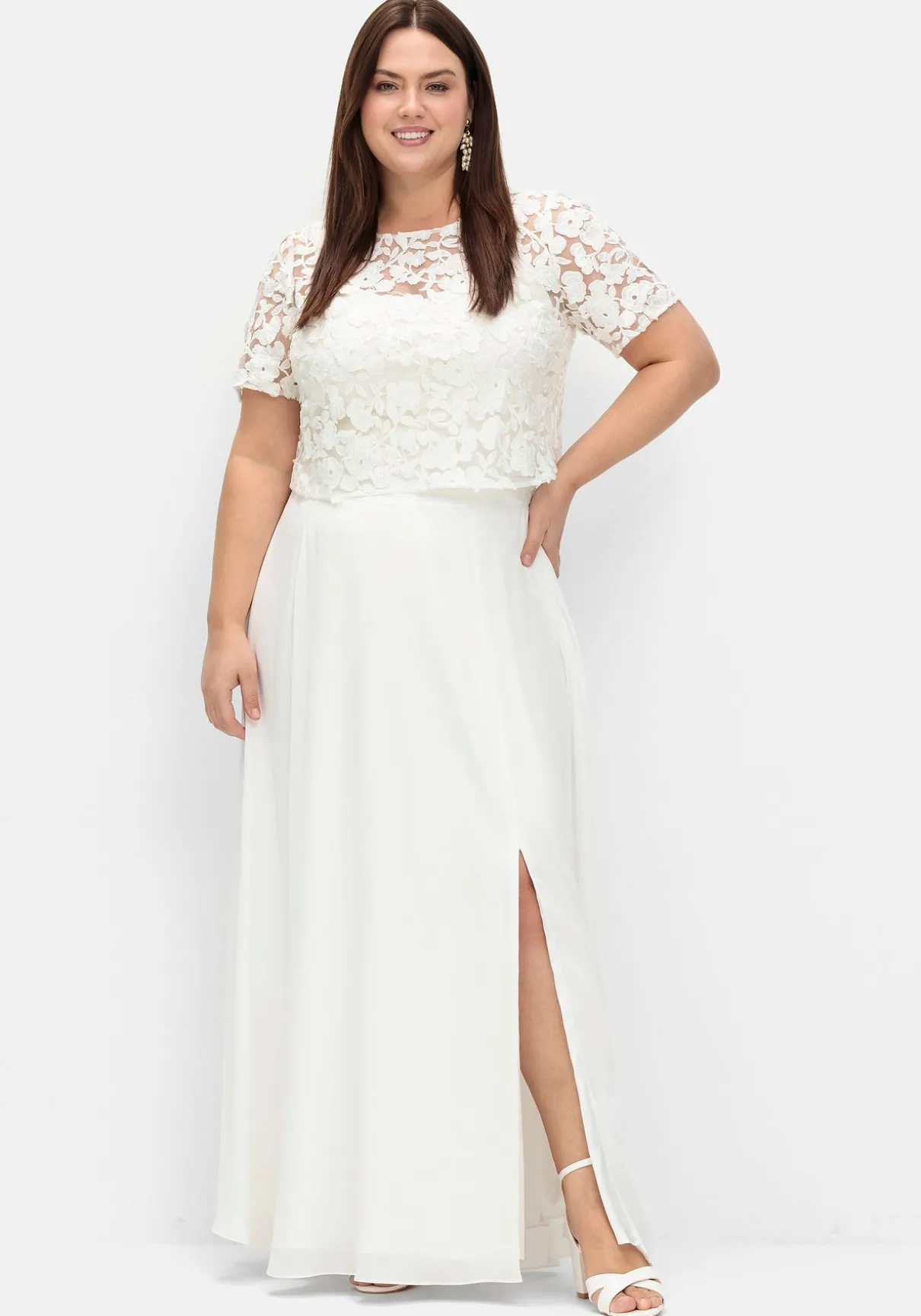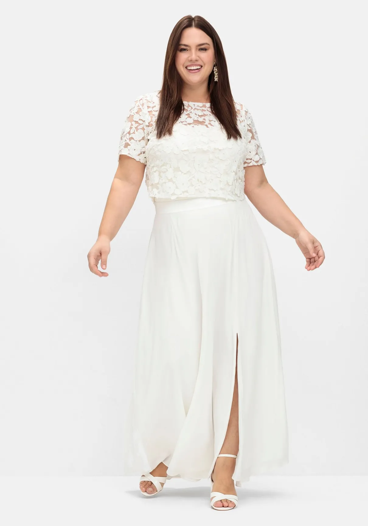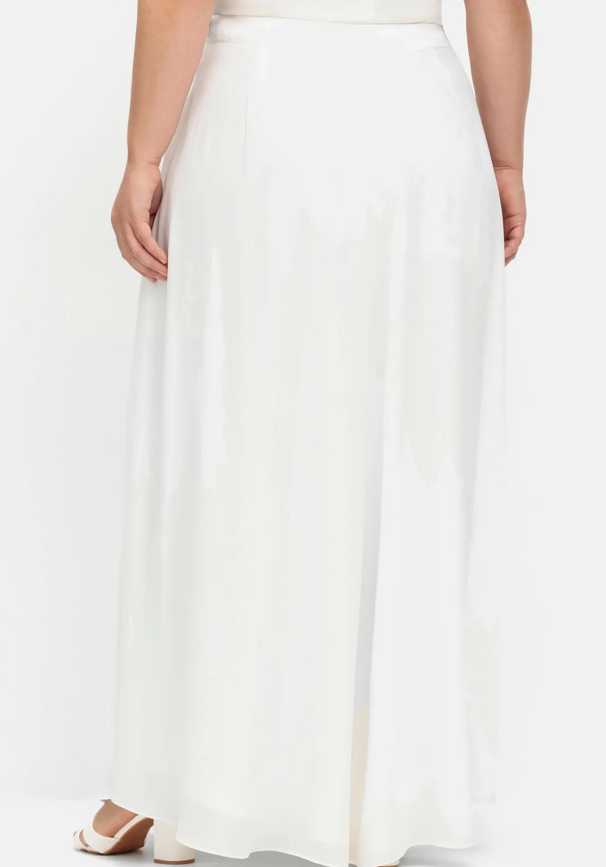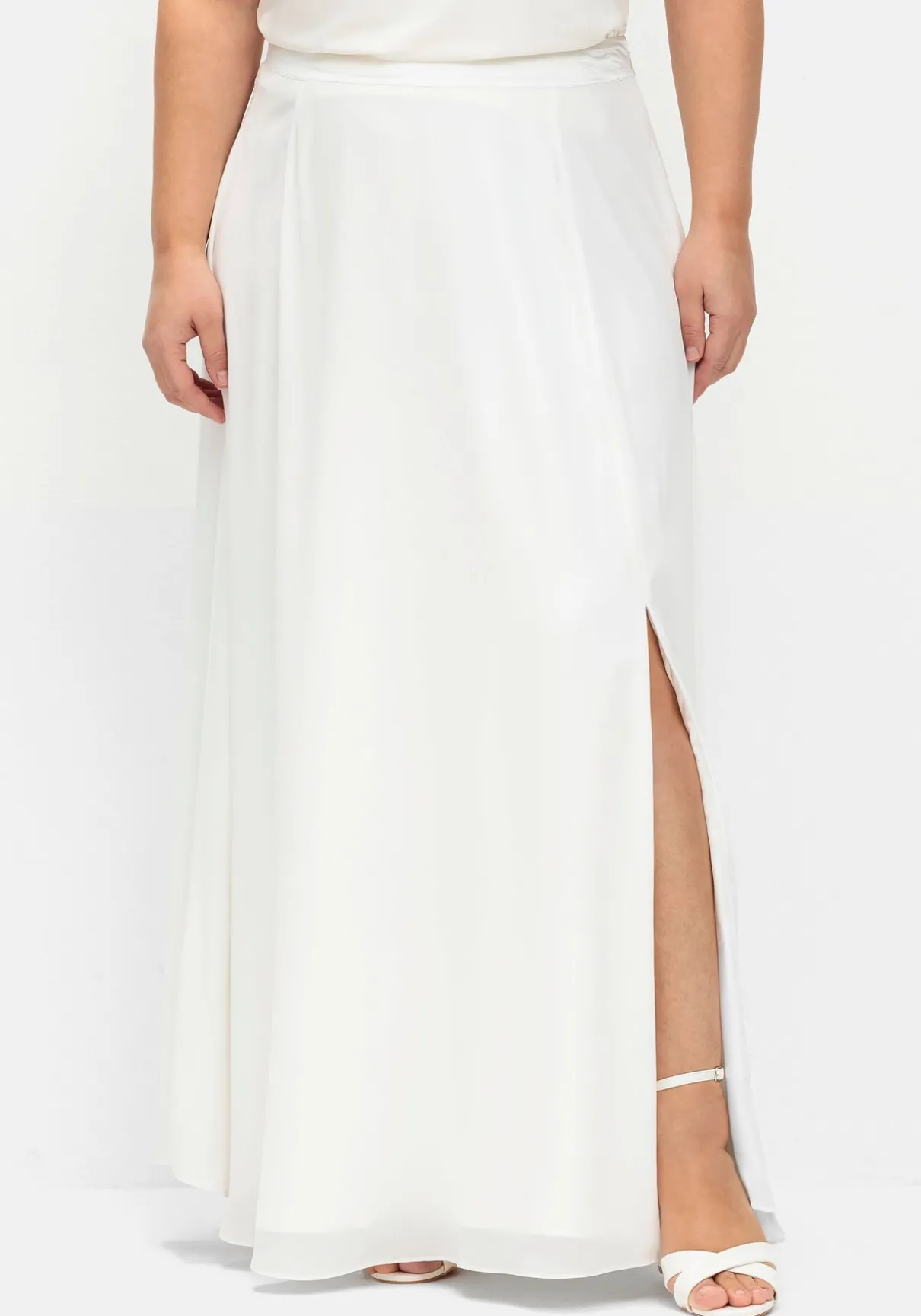 Chiffonrock in Maxilänge, mit seitlichem Schlitz. Der weit schwingende Rock ist nach unten leicht ausgestellt geschnitten, der hohe Schlitz sorgt für Raffinesse und gleichzeitig optimalen Tragekomfort. Auch der elastische Formbund in edler Satinoptik sitzt bequem, dazu kommt ein nahtfeiner seitlicher Reißverschluss. So entsteht ein eleganter Stylingpartner, der perfekt auf unsere festlichen Oberteile abgestimmt ist und in der Farbe Offwhite perfekt zu den sheego Hochzeits-Kombinationen passt.