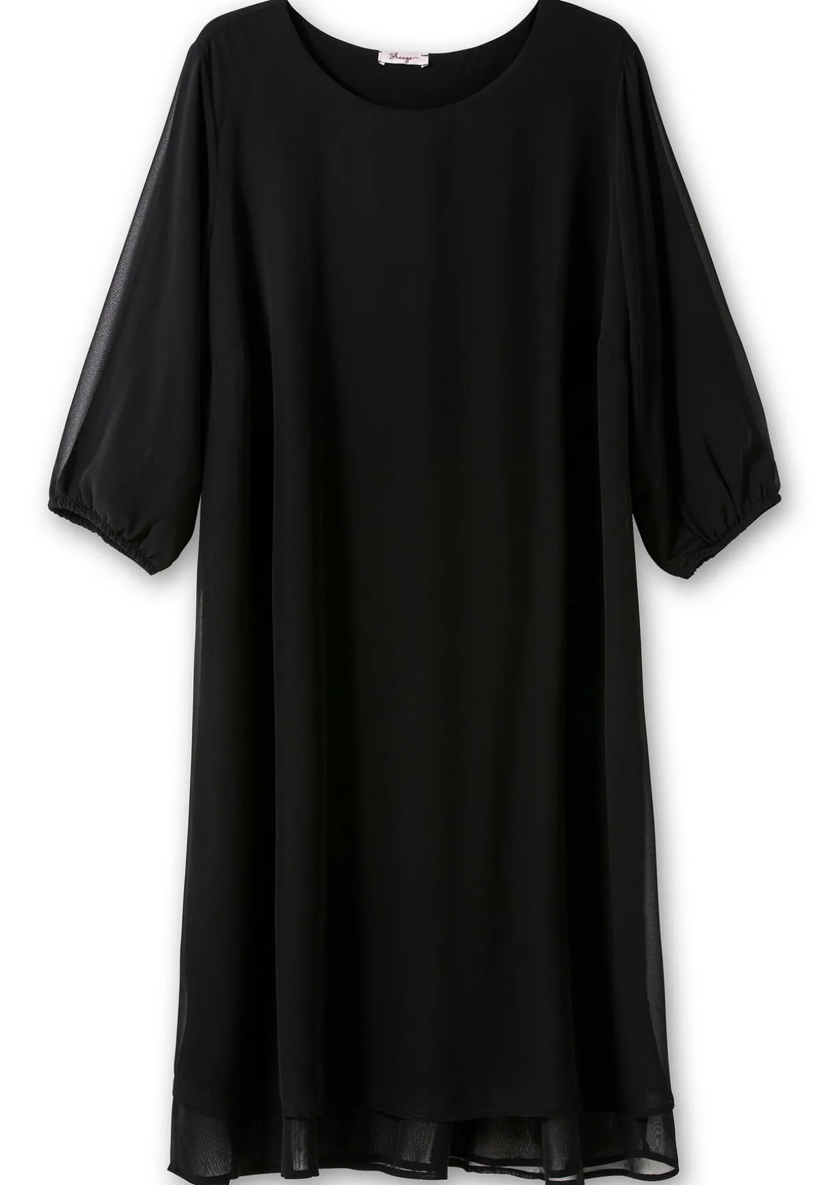 Kleid im Layerlook. Für eine feminine, elegante Optik sorgt die obere Lage aus leicht transparentem Chiffon, die untere Lage aus fließender, elastischer Viskose macht den Look blickdicht. Der ansonsten sehr cleane, reduzierte Schnitt zeigt sich mit Rundhalsausschnitt und leicht ausgestelltem Saum. Die 3/4-Ärmel enden mit Gummizugbund.