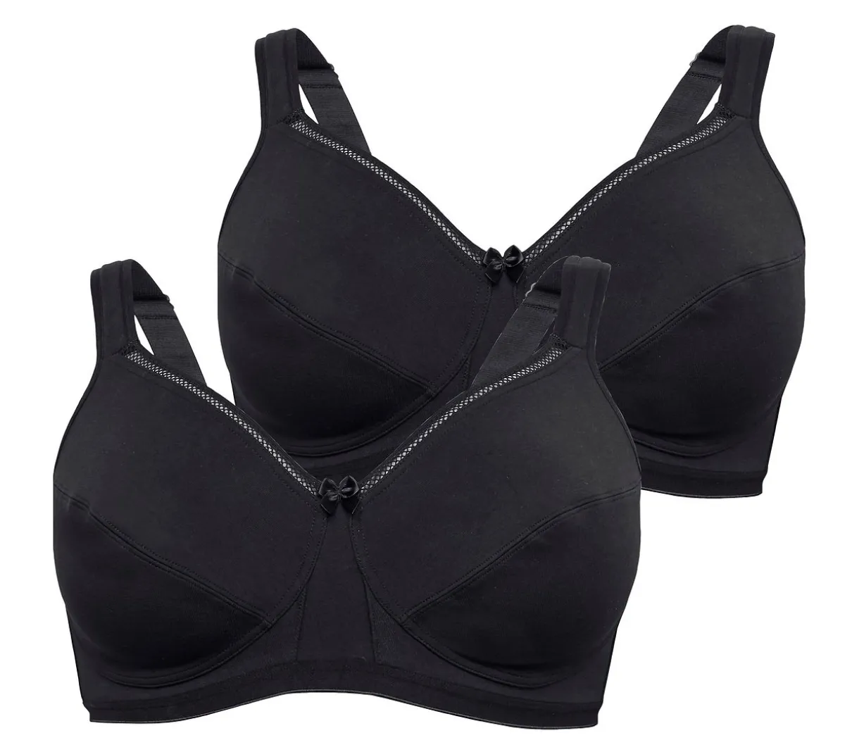 BH im Doppelpack. Sowohl die wattierten Träger als auch der Rückenverschluss sind verstellbar.