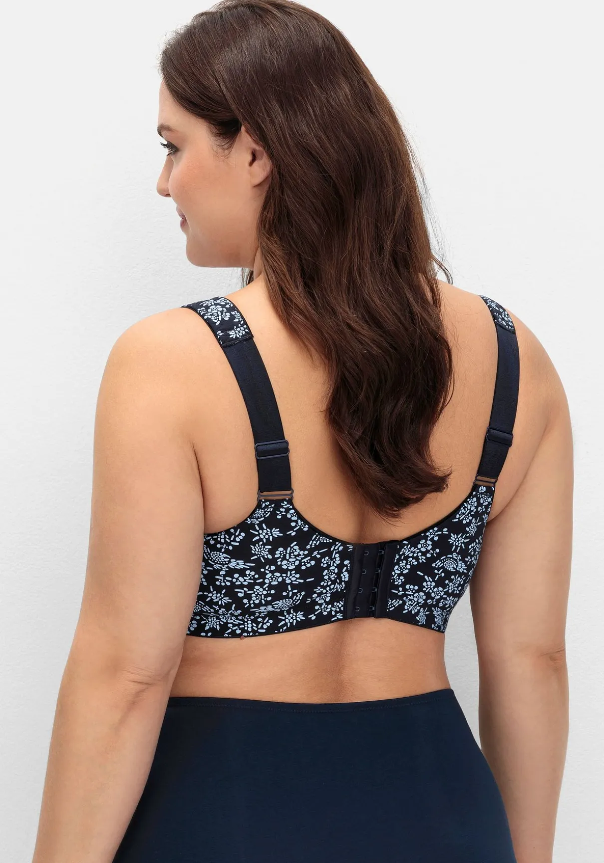 Die wattierten Träger und der Rückenverschluss können individuell verstellt werden, die abdeckende Form schmeichelt der Silhouette.
