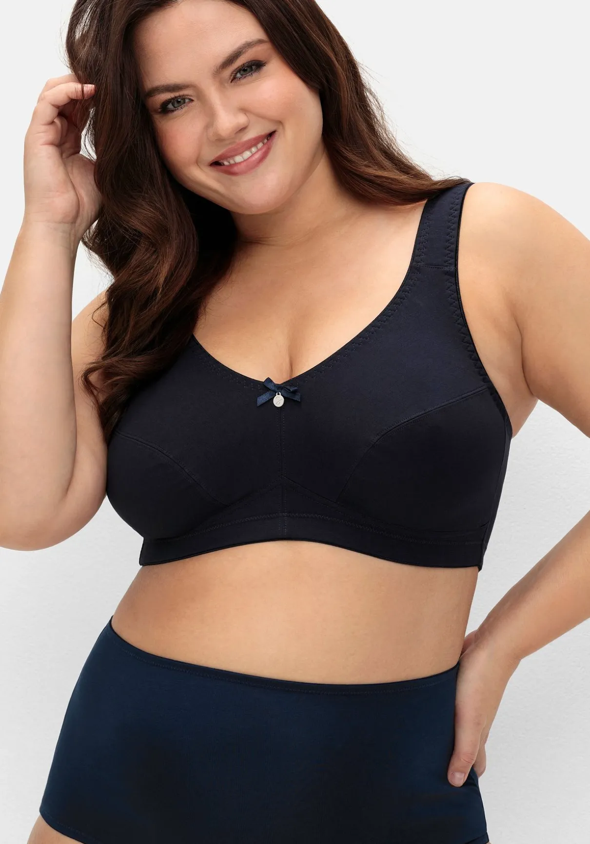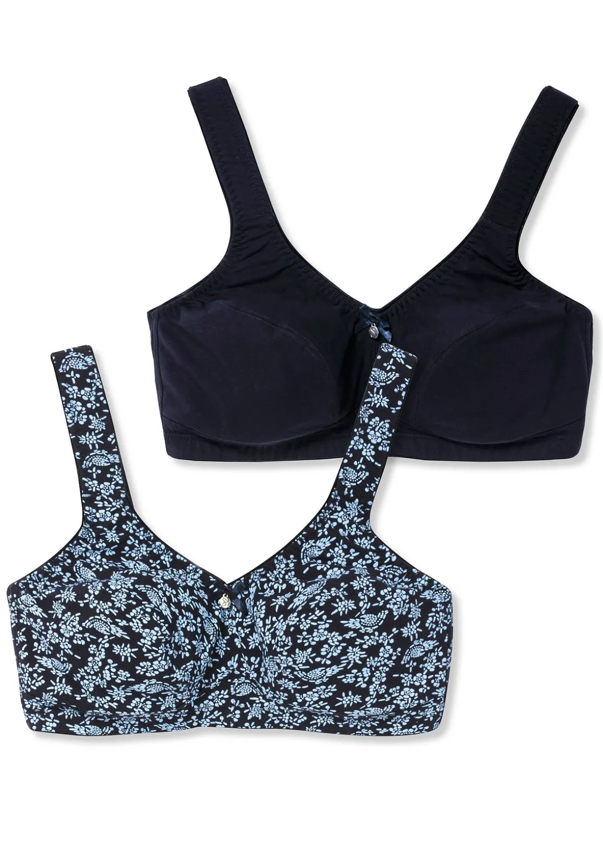 Entlastungs-BHs im praktischen 2er-Pack. Die formenden Teilungsnähte passen sich der Büste optimal an, eine kleine Schleife mit Metalllabel ist dabei ein charmantes Detail. Die bequeme, bügellose Form und das stützende Mesh-Innenfutter sorgen für optimalen Halt und Entlastung.