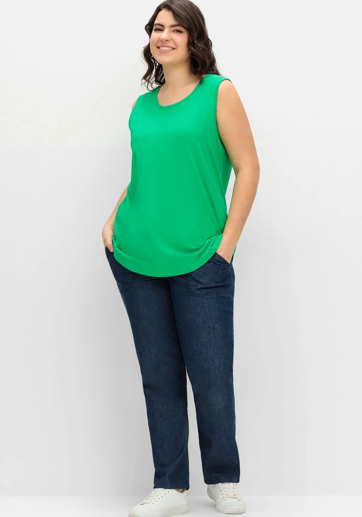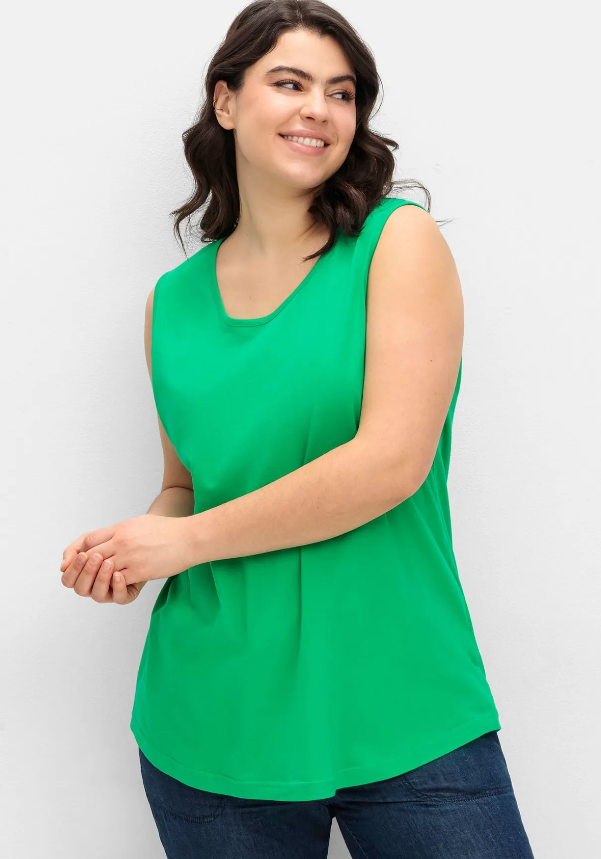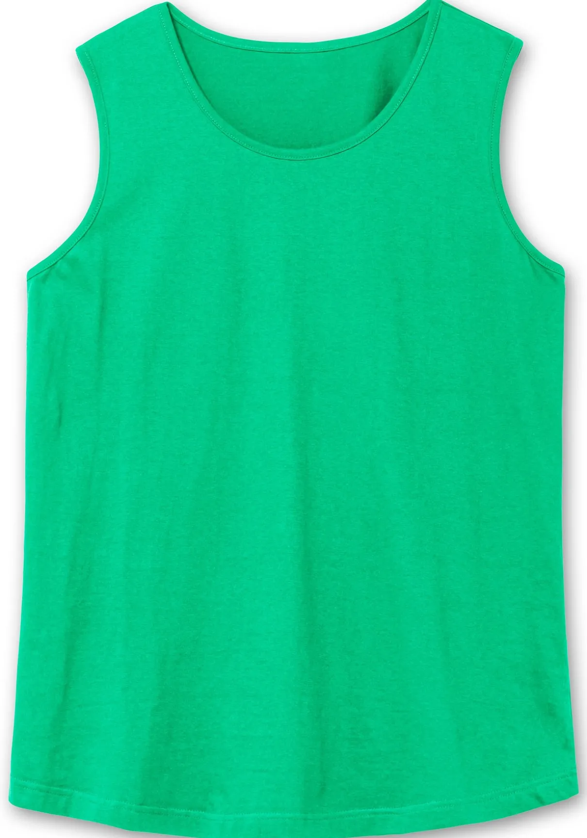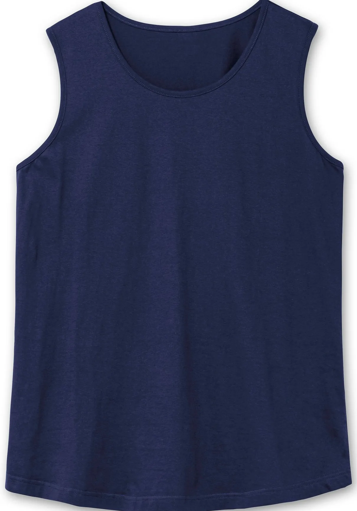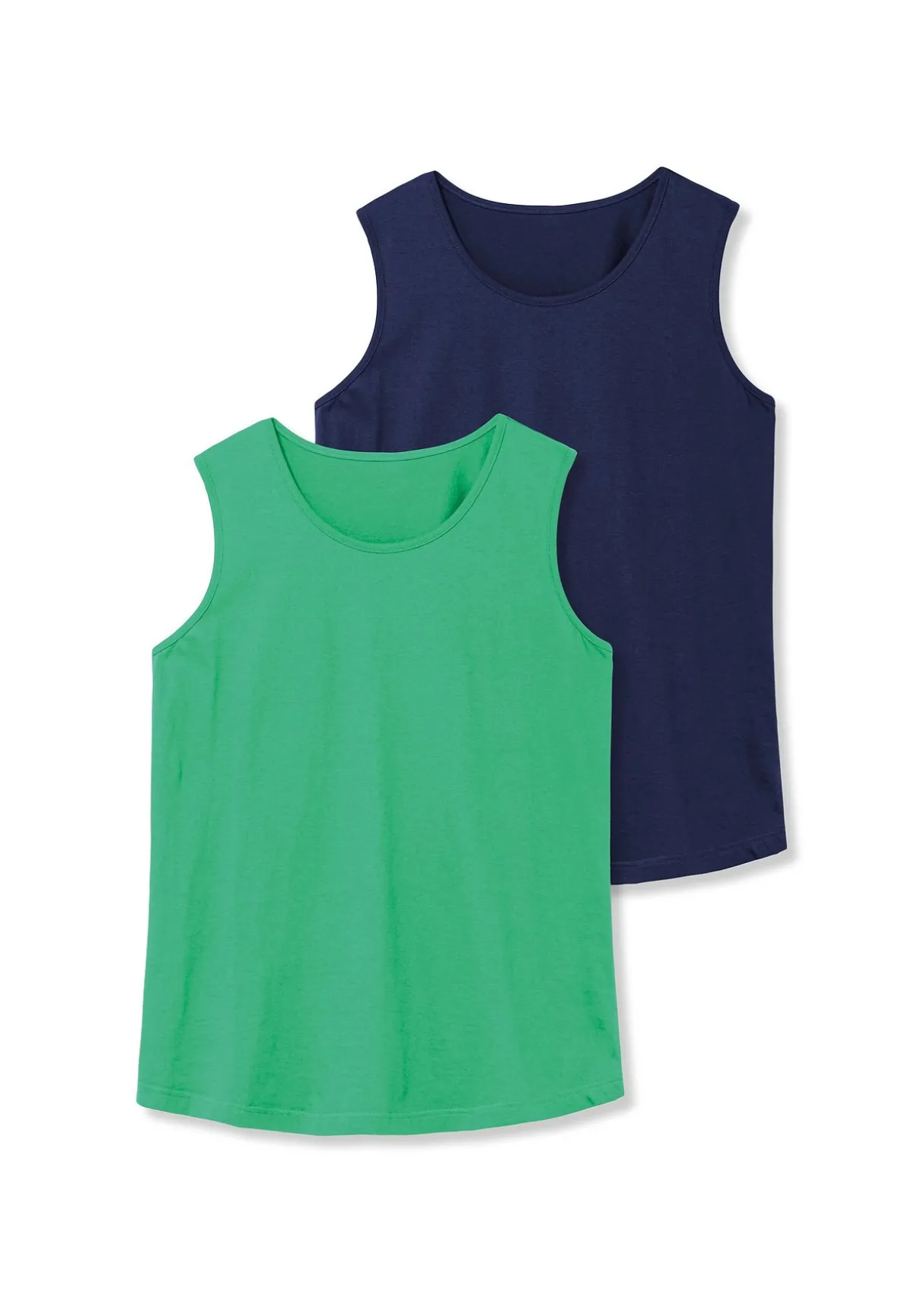 Tops im praktischen Doppelpack und jeweils in zwei verschiedenen Farben. Die ärmellose Form ist mit Rundhalsausschnitt und breiten, bequemen Trägern gearbeitet. Der abgerundete Saum und die leicht verlängerter A-Form sorgen für eine schmeichelhafte Silhouette.