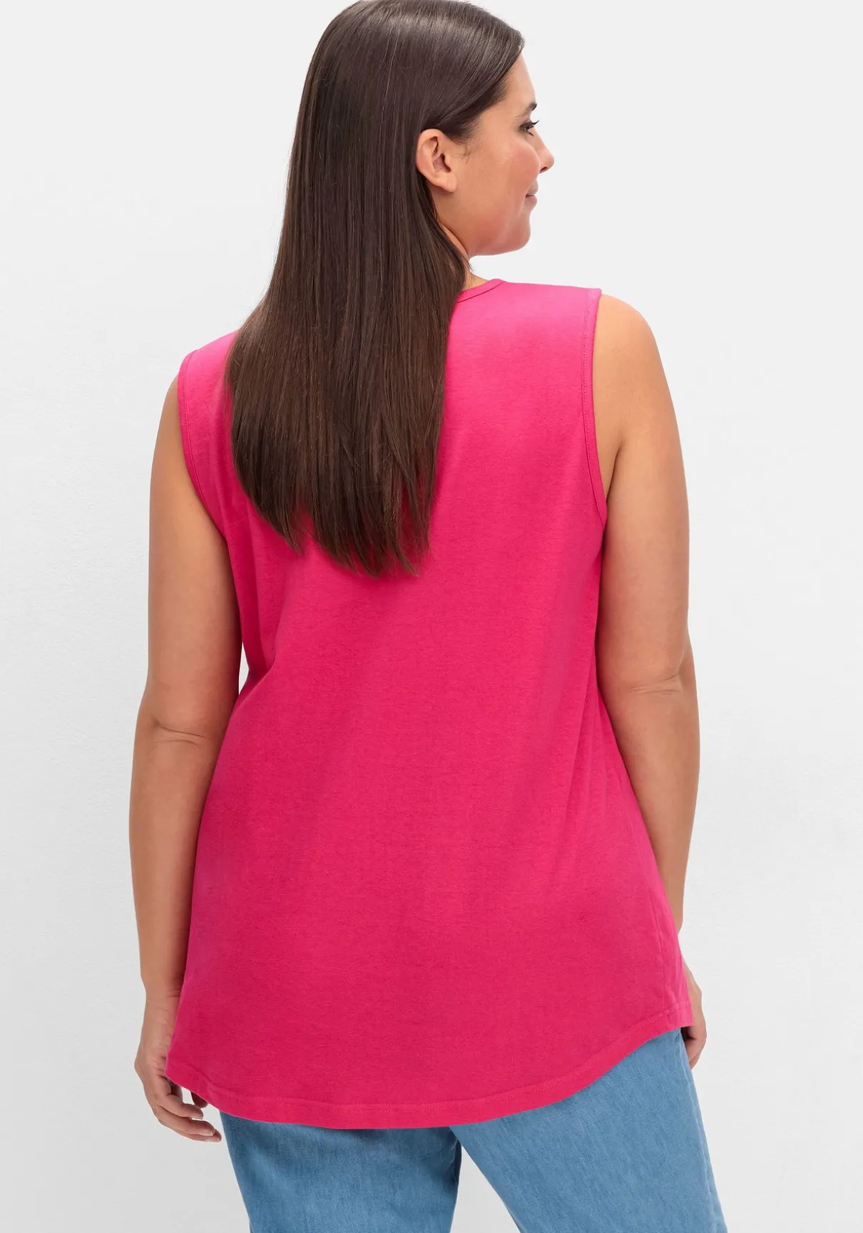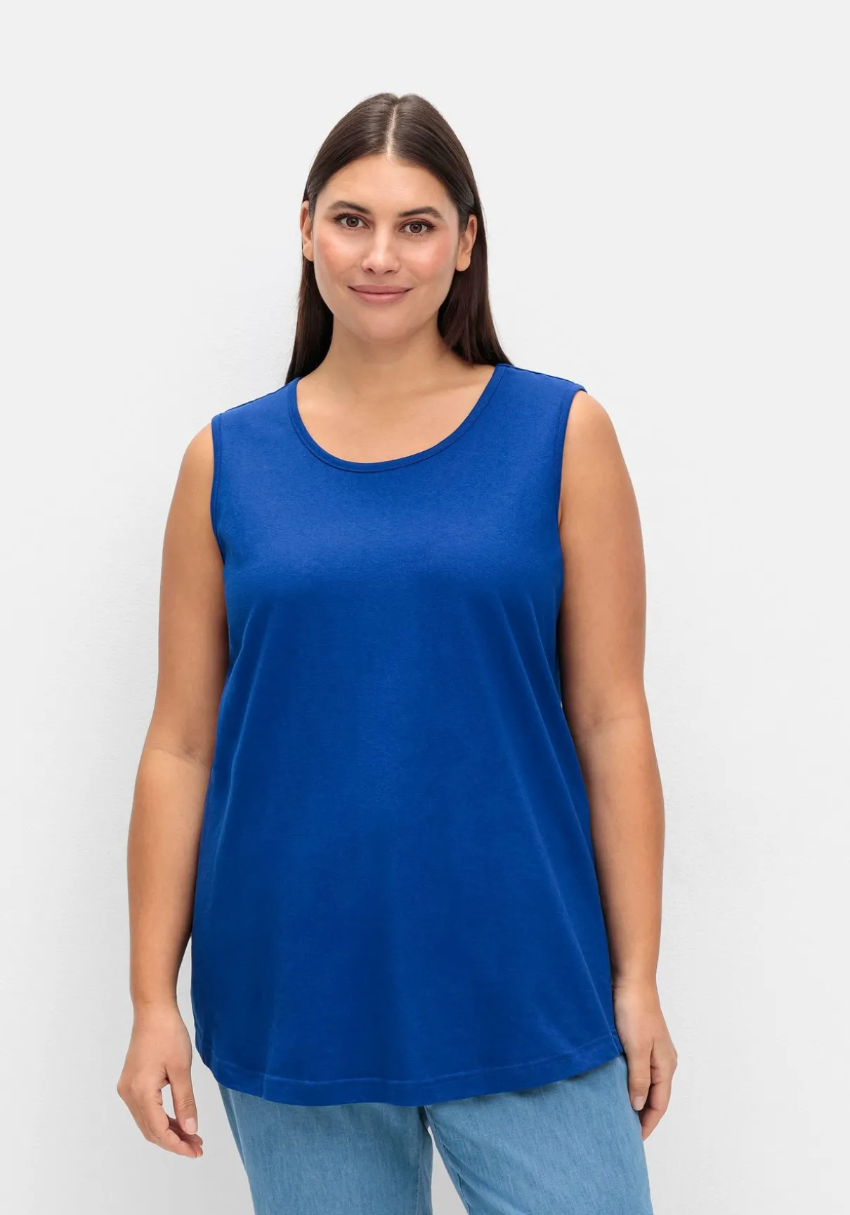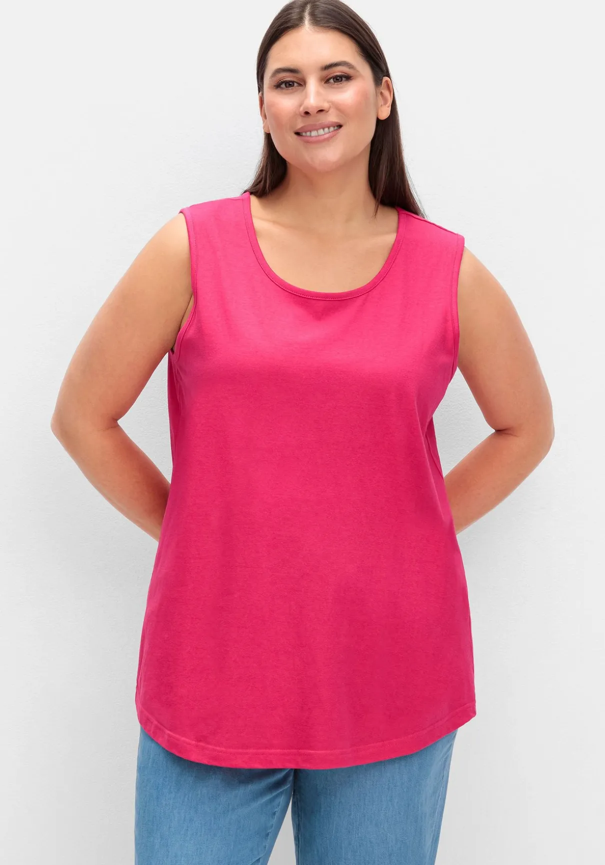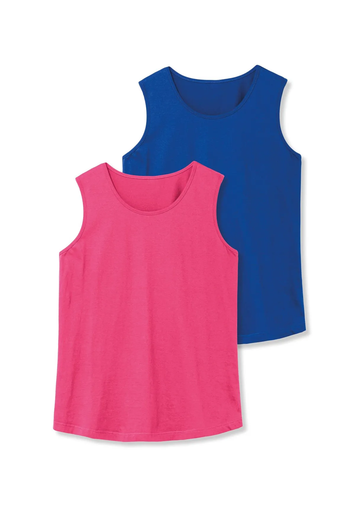 Tops im praktischen Doppelpack und jeweils in zwei verschiedenen Farben. Die ärmellose Form ist mit Rundhalsausschnitt und breiten, bequemen Trägern gearbeitet. Der abgerundete Saum und die leicht verlängerter A-Form sorgen für eine schmeichelhafte Silhouette.