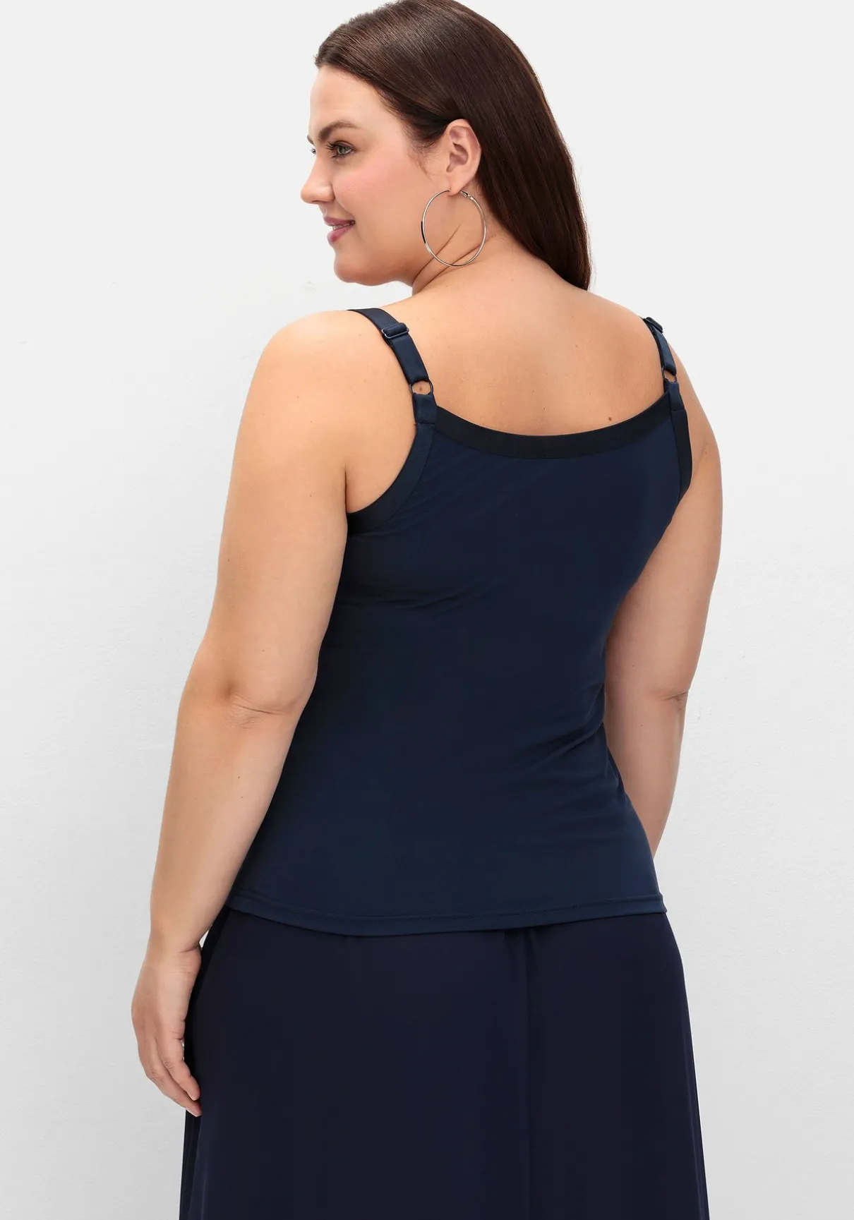 Das Oberteil schmiegt sich sanft an den Körper an und trägt durch die doppellagige Verarbeitung nicht auf. Brustabnäher und verstellbare Träger sorgen für eine optimale Passform.