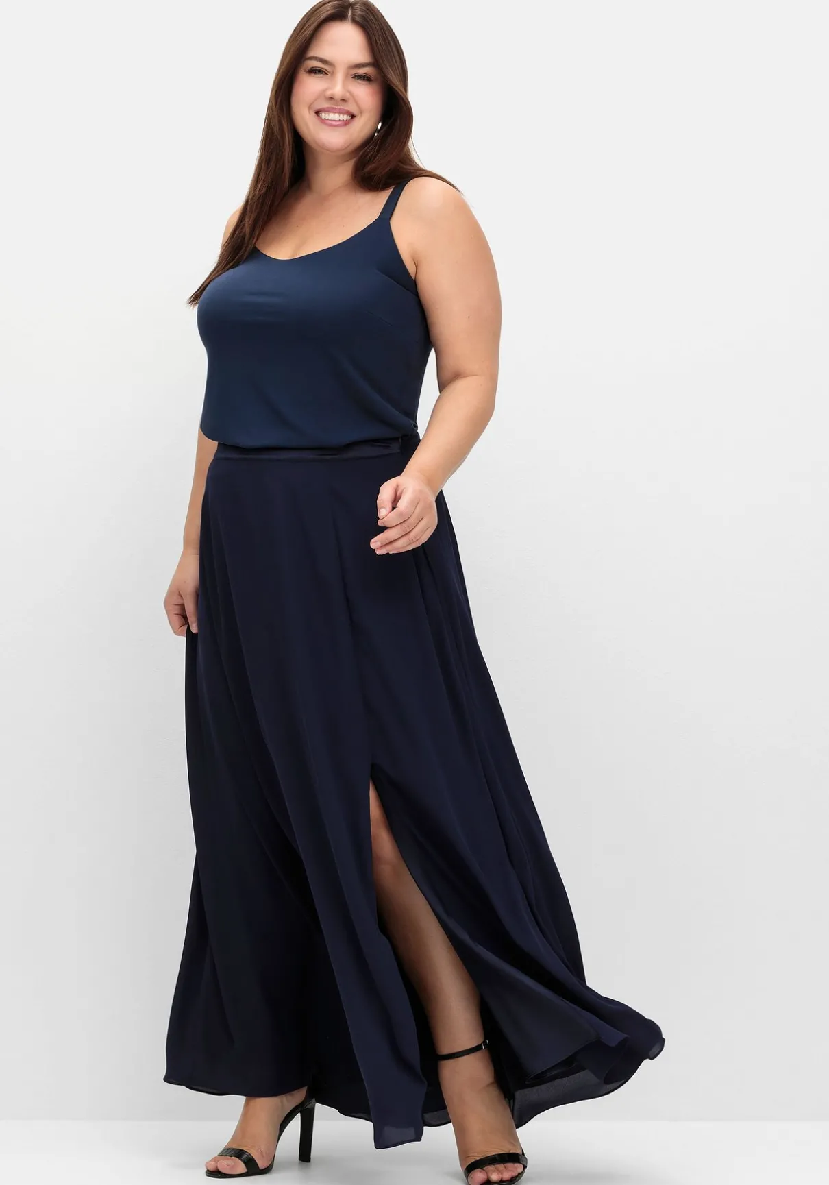 Spaghettitop in edler Optik. Der tiefe Rundhalsausschnitt und Armlöcher erhalten durch den Besatz in feiner Satinoptik dezente Eleganz. Auch die schmalen Träger sind in schimmernder Optik gearbeitet. Durch die doppelte Lage wird das Top angenehm blickdicht. Es lässt sich ideal auch zu festlichen Outfits tragen und passt in der Farbe Offwhite perfekt zu unseren Hochzeits-Kombinationen.