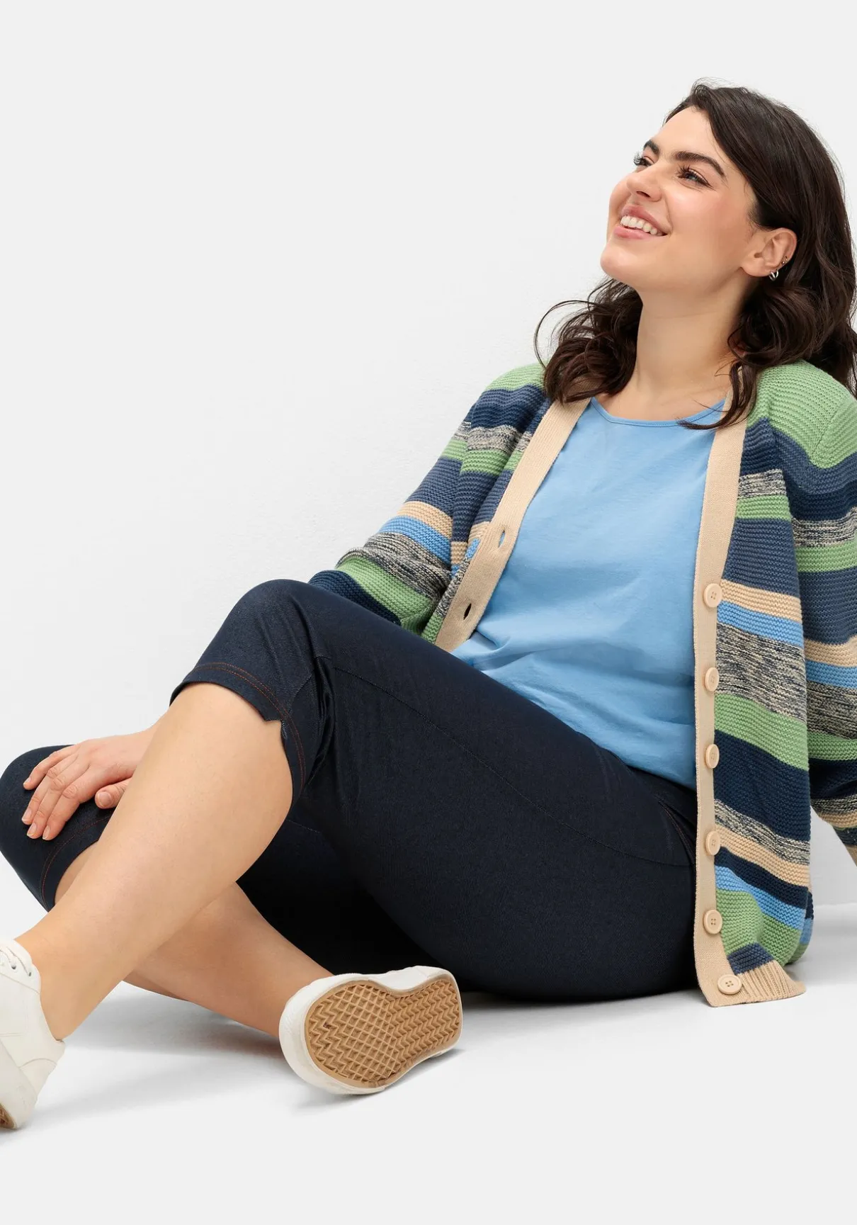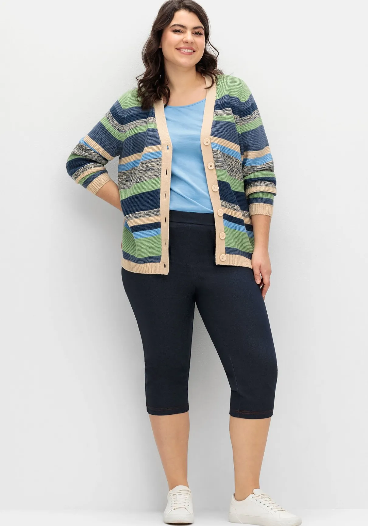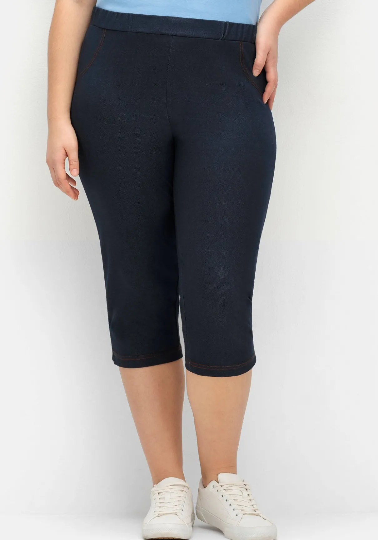 Caprihose in extraschmaler Beinform. Das Jeans-ähnliche Material und die imitierten Taschen verleihen der Hose den typischen Denim-Look. Gleichzeitig trägt sich die weiche, leichte Qualität bequem, auch der rundum elastische Bund sorgt für Tragekomfort.
