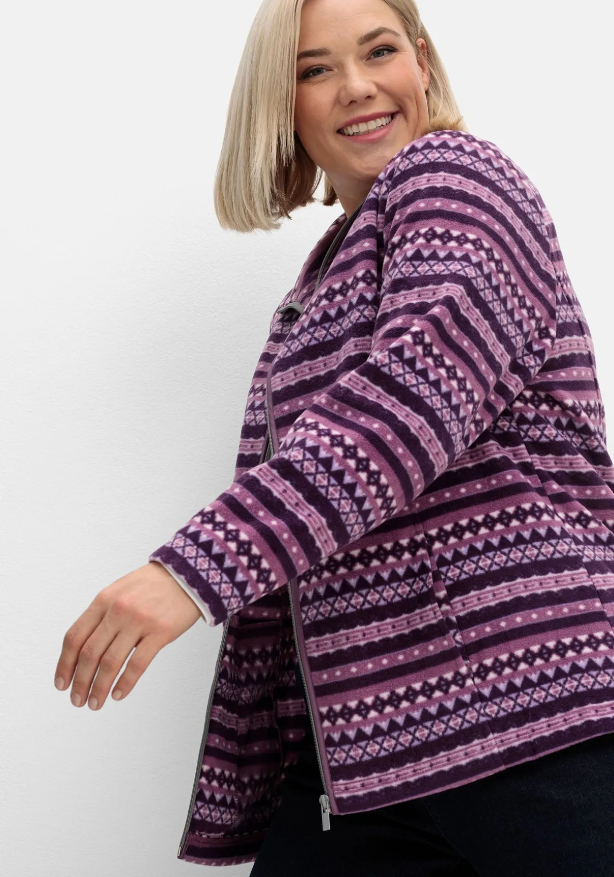 Fleecejacke mit Anti-Pilling-Ausrüstung. Feminin und winterlich wirkt sie dank des hübschen Allovermuster im Norweger-Stil. Durch den mit Reißverschluss bis oben schließbaren Stehkragen hält die Jacke kuschelig warm, praktisch sind die beiden Nahttaschen.