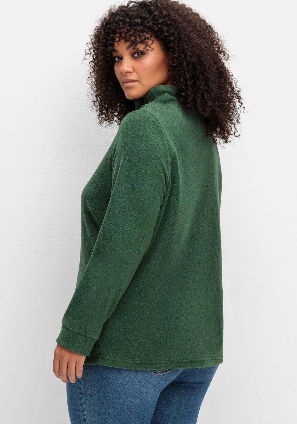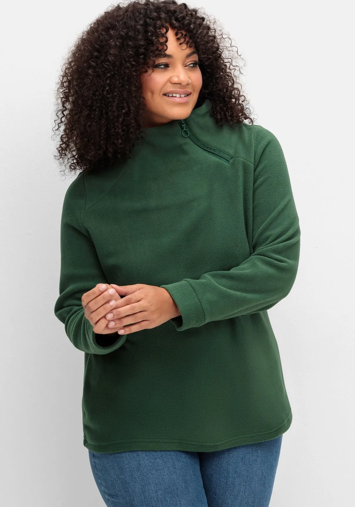 Shirt aus kuscheligem Fleece. Besonders ins Auge fällt der Stehkragen, der mit schräg gesetztem Reißverschluss für eine sportive Optik sorgt. Das Oberteil ist mit breiten Bündchen an den langen Ärmeln und einem geraden Saum ausgestattet, was den Wohlfühl-Look perfekt macht.