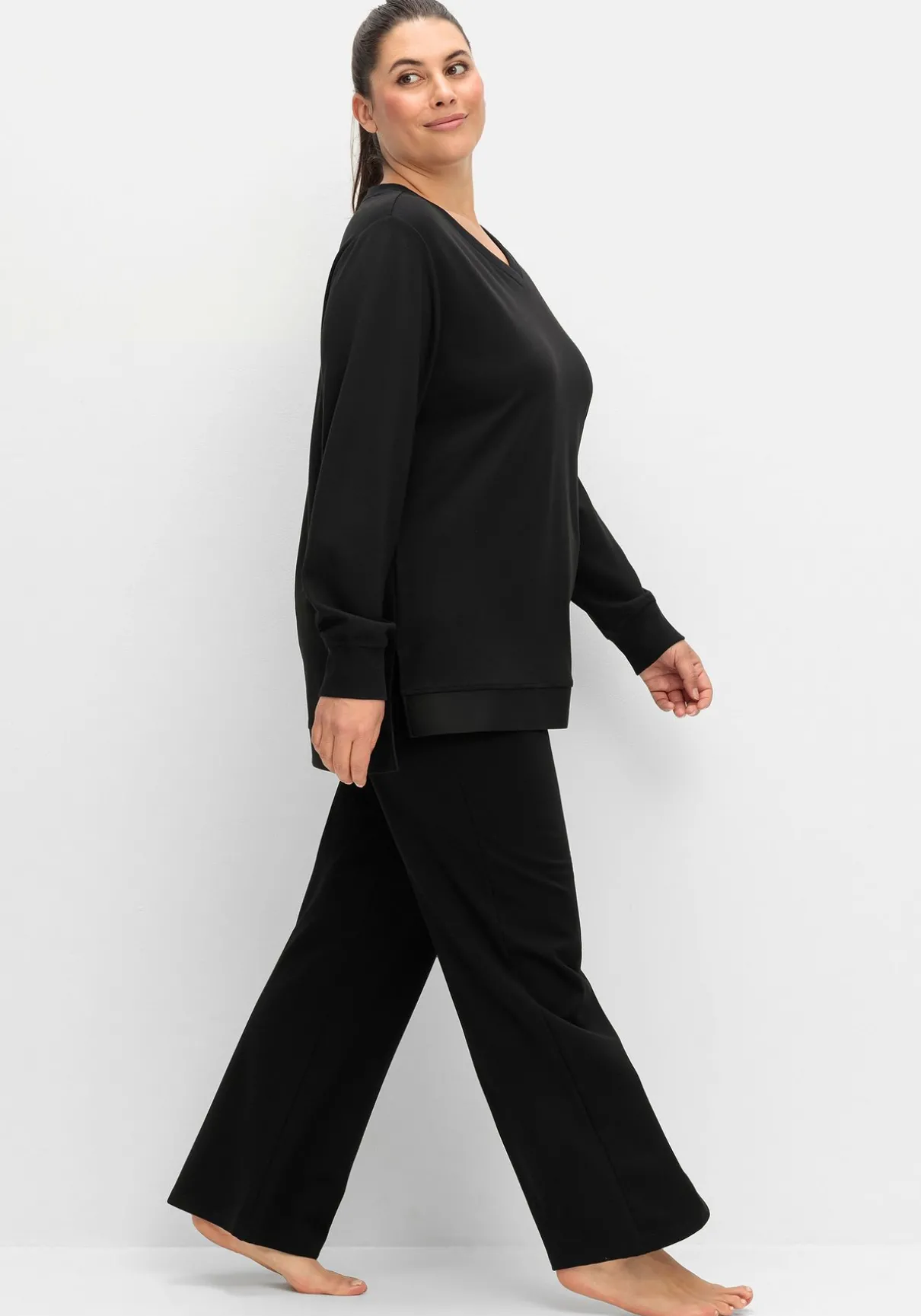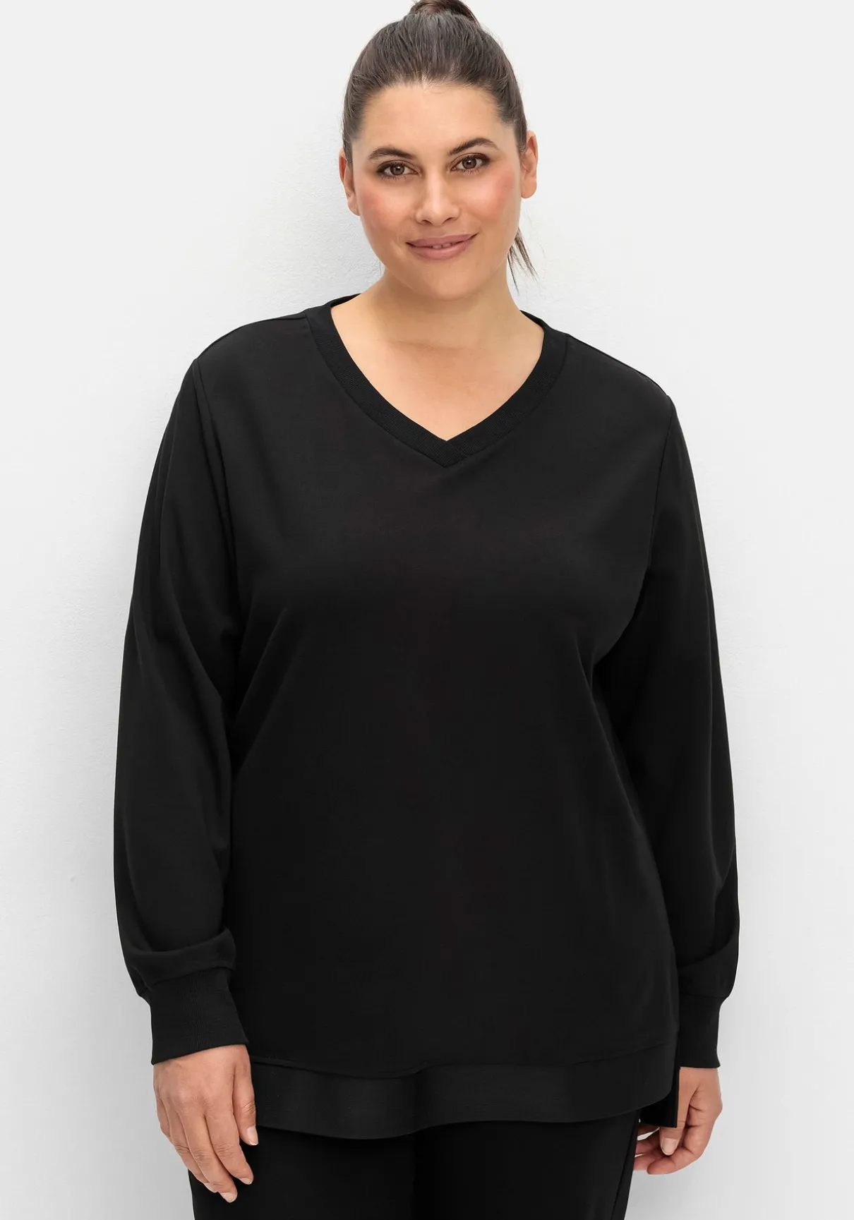 Funktions-Sweatshirt mit sportivem V-Ausschnitt. Das komfortable Oberteil ist hinten etwas länger geschnitten und fällt so schmeichelnd über den Po. Der Saum endet mit elastischen Bündchen, Seitenschlitzen geben mehr Bewegungsfreiheit. Ein kleines Metalllabel ziert den Nacken.