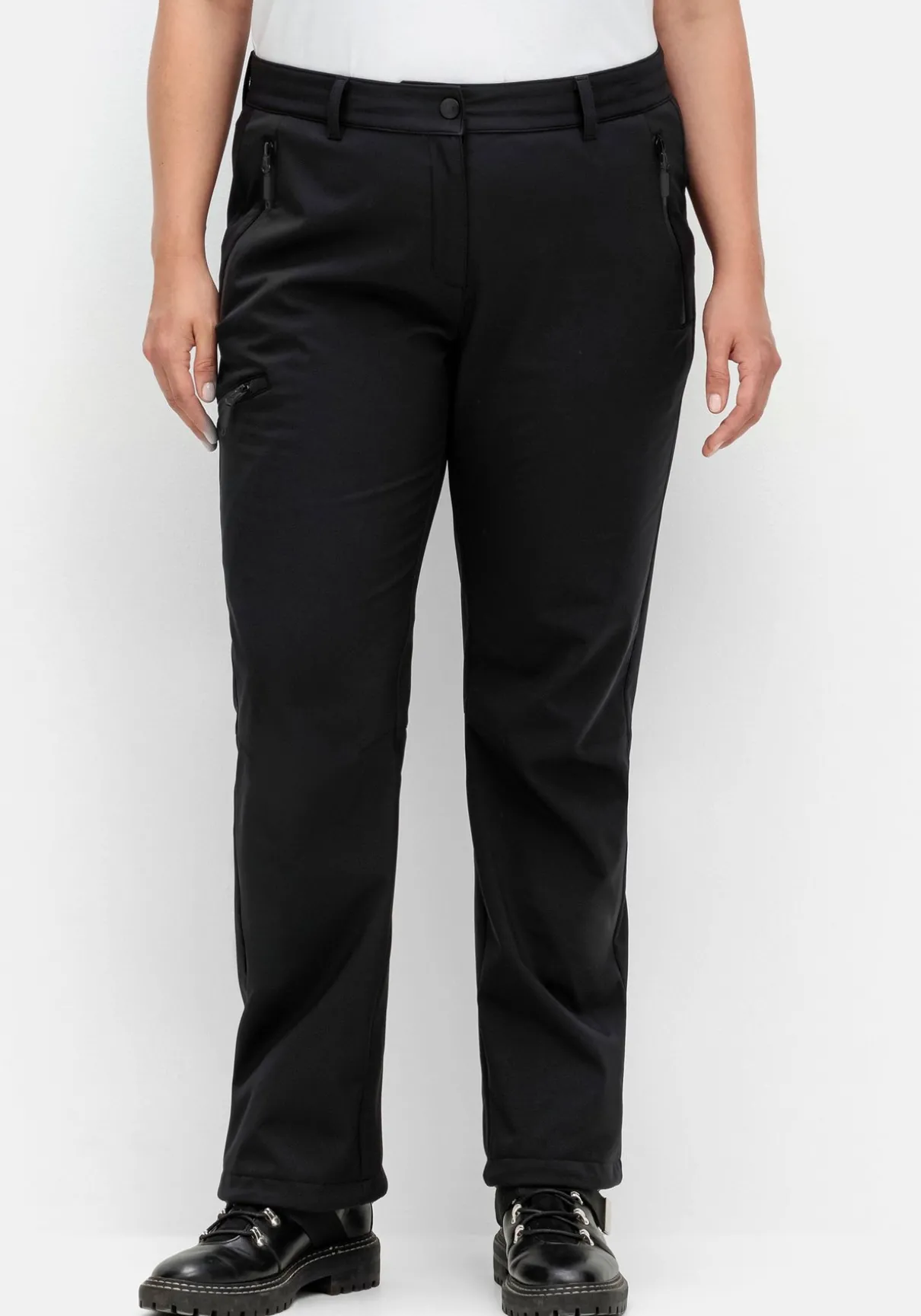 Softshellhose mit Fleecefutter. Die wärmende, wasser- und windabweisende Qualität macht die Hose zum idealen Outdoorbegleiter an kälteren Tagen. Dazu kommen praktische Details wie die drei Reißverschlusstaschen oder der Bund, der mit Gürtelschlaufen versehen ist und mit einem innenliegenden Klettriegel in der Weite verstellt werden kann.