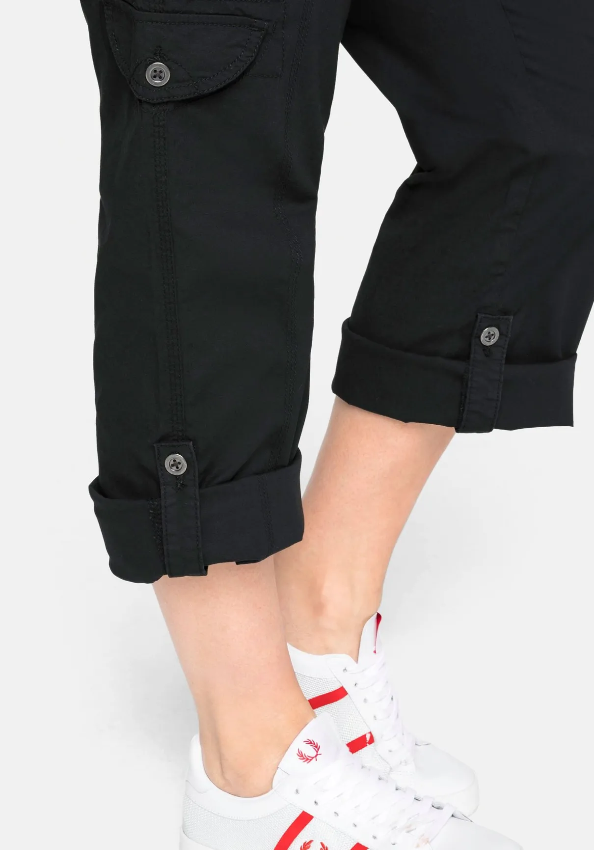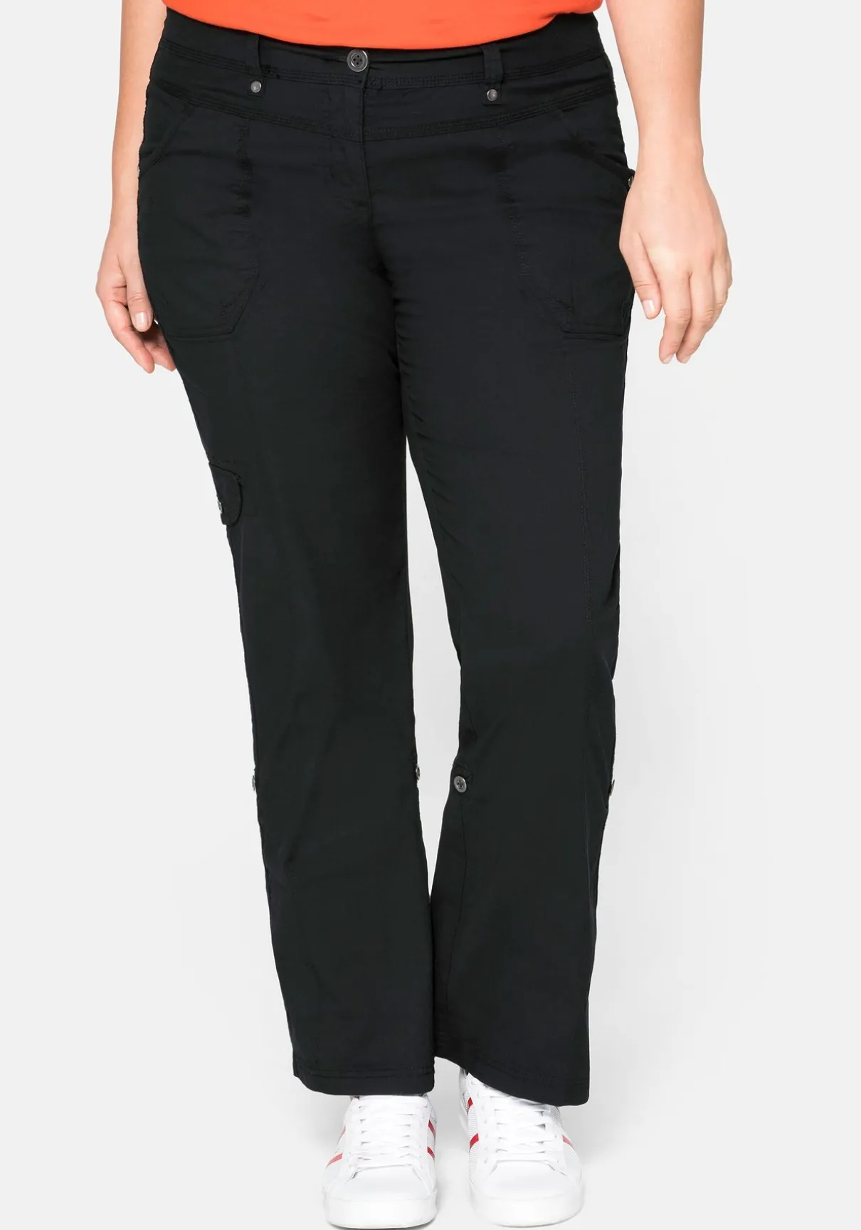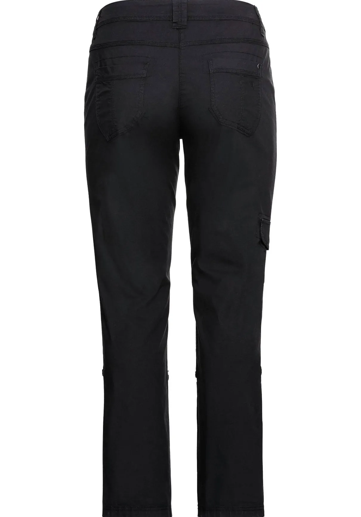 Diese sportive Hose zeigt sich mit charakteristischen Ziercargotaschen an der Seite. Zwei Eingrifftaschen vorn und hinten ergänzen den legeren Look. Besonders praktisch: Die Beine können entweder lang getragen oder hochgekrempelt und mit Riegel und Knopf fixiert werden.