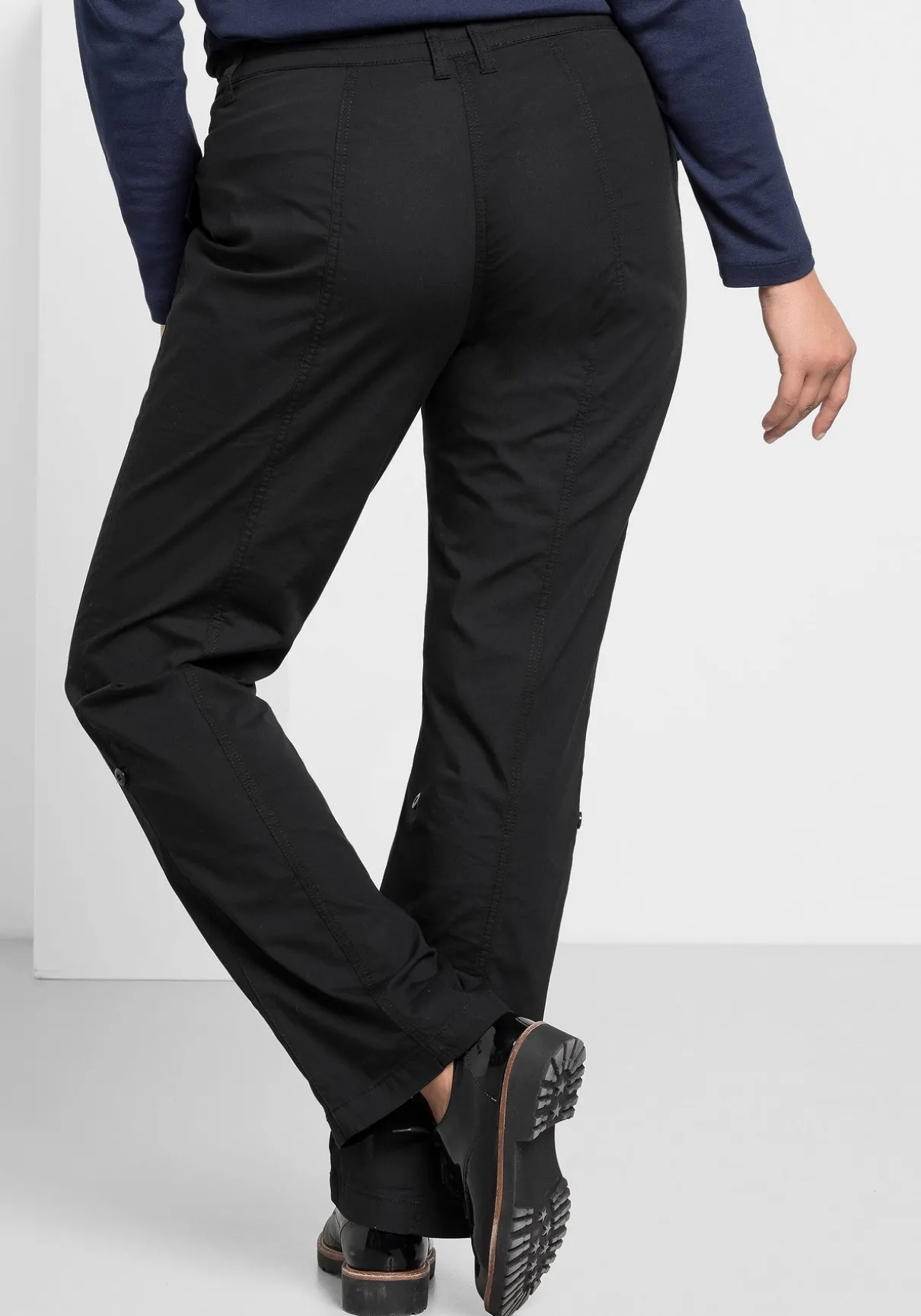 Hose zum Krempeln. Besonders praktisch: Die Hose kann lang getragen oder auf 3/4-Länge gekrempelt und mit Knopf und Riegel befestigt werden. Die markanten Teilungsnähte unterstreichen den sportiven Look. Vorn befinden sich zwei Eingrifftaschen mit Zierpatte.