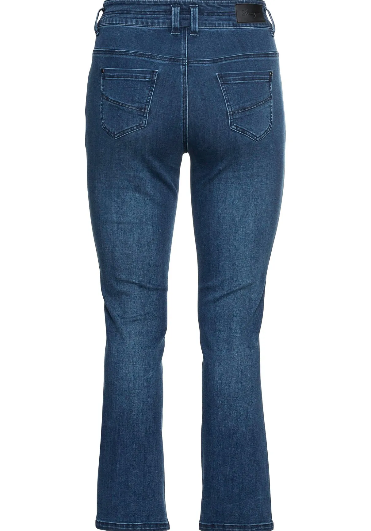 Gerade Jeans in Curvy-Schnitt MANUELA, bei schmalerer Taille und kräftigen Oberschenkeln. Der cleane Look zeigt sich mit Formbund, Gürtelschlaufen, zwei Knöpfen und Reißverschluss. Der Five-Pocket-Stil erhält durch die Stickerei an den Taschen vorn eine verspielte Note. Die individuelle Waschung macht den kombistarken Look perfekt.