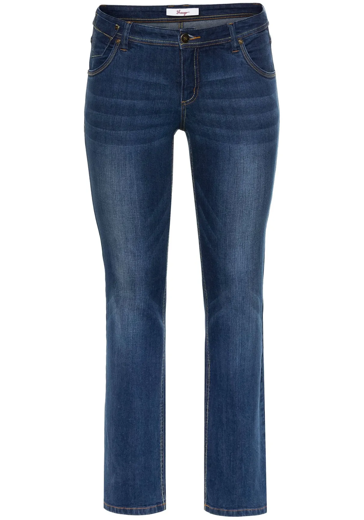 Stretch-Jeans in gerader Schnittform. Die Hose überzeugt durch einen klassischen Five-Pocket-Style mit individuellen Used-Effekten. Optisches Highlight sind die zweifarbigen Kontrastnähte sowie die Stickerei an den Gesäßtaschen.