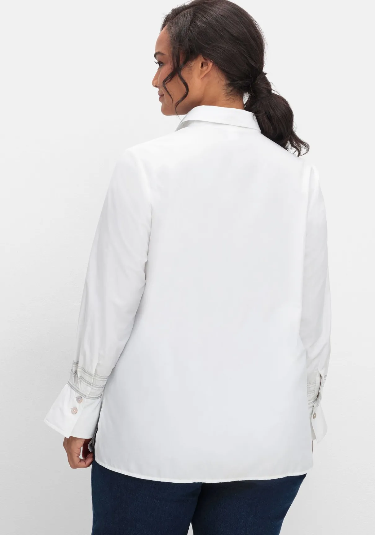 Die Bluse ist figurbetont geschnitten. Lange Seitenschlitze geben Bewegungsfreiheit.