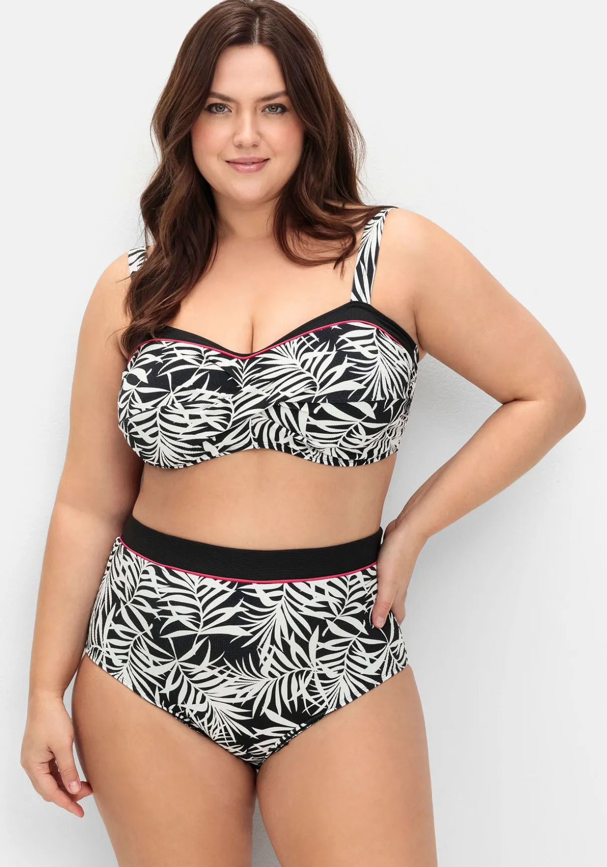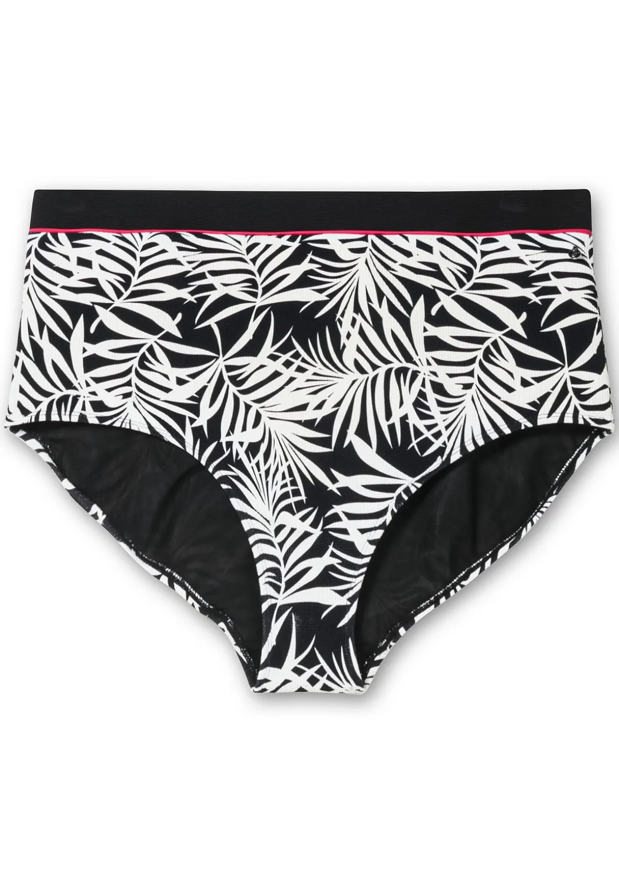 Bikinihose mit Shaping-Effekt. Die Badehose ist hoch geschnitten, der dekorative Blätterprint erhält durch das kontrastfarbene Piping einen modernen Twist. Das breite elastische Bündchen sitzt besonders bequem, der Mesh-Einsatz vorn formt geschickt die Bauchpartie. Dank des Mix & Match-Charakters lässt sich diese Hose wunderbar mit anderen Teilen aus der sheego Badekollektion kombinieren.