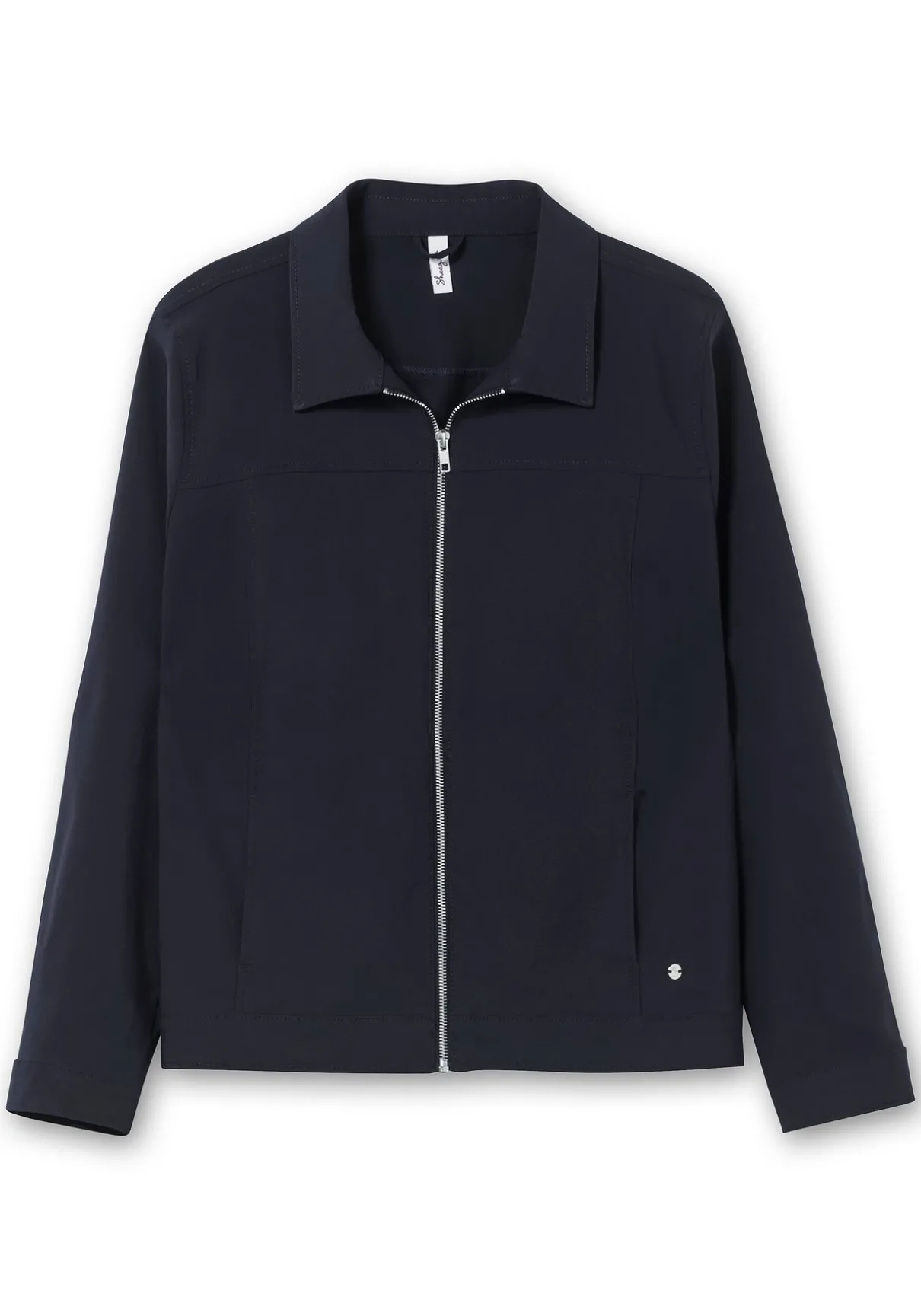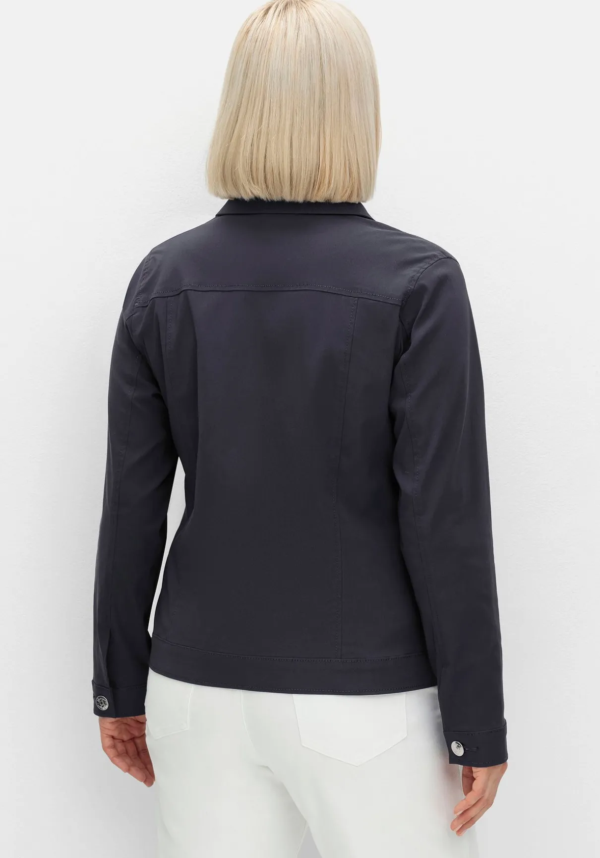Jacke in modischer Kurzform. Mit Umlegekragen und formgebenden Teilungsnähten ist der Fit an den typischen Jeansjackenstil angelehnt. Der durchgehende Reißverschluss und die dekorativen Metallknöpfe am Ärmelsaum unterbrechen den Look optisch. Für eine optimale Passform sorgt die Passe im vorderen und hinteren Teil, zwei Eingrifftaschen in den Teilungsnähten sind eine praktische Ergänzung.