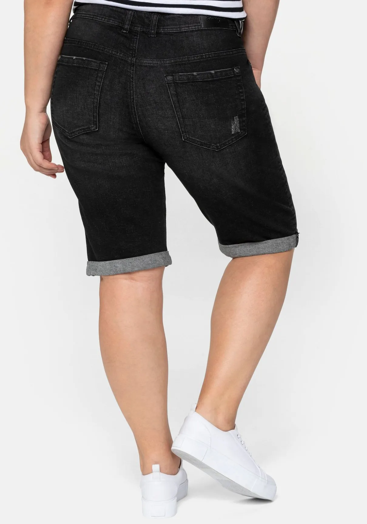 Im angesagten Used-Look präsentieren sich die Bermudas aus Denim. Moderne Lässigkeit entsteht durch die Destroyed- und Used-Effekte. Modisch und praktisch zugleich sind die Five Pockets. Geschlossen wird die Hose mithilfe einer Knopfleiste.