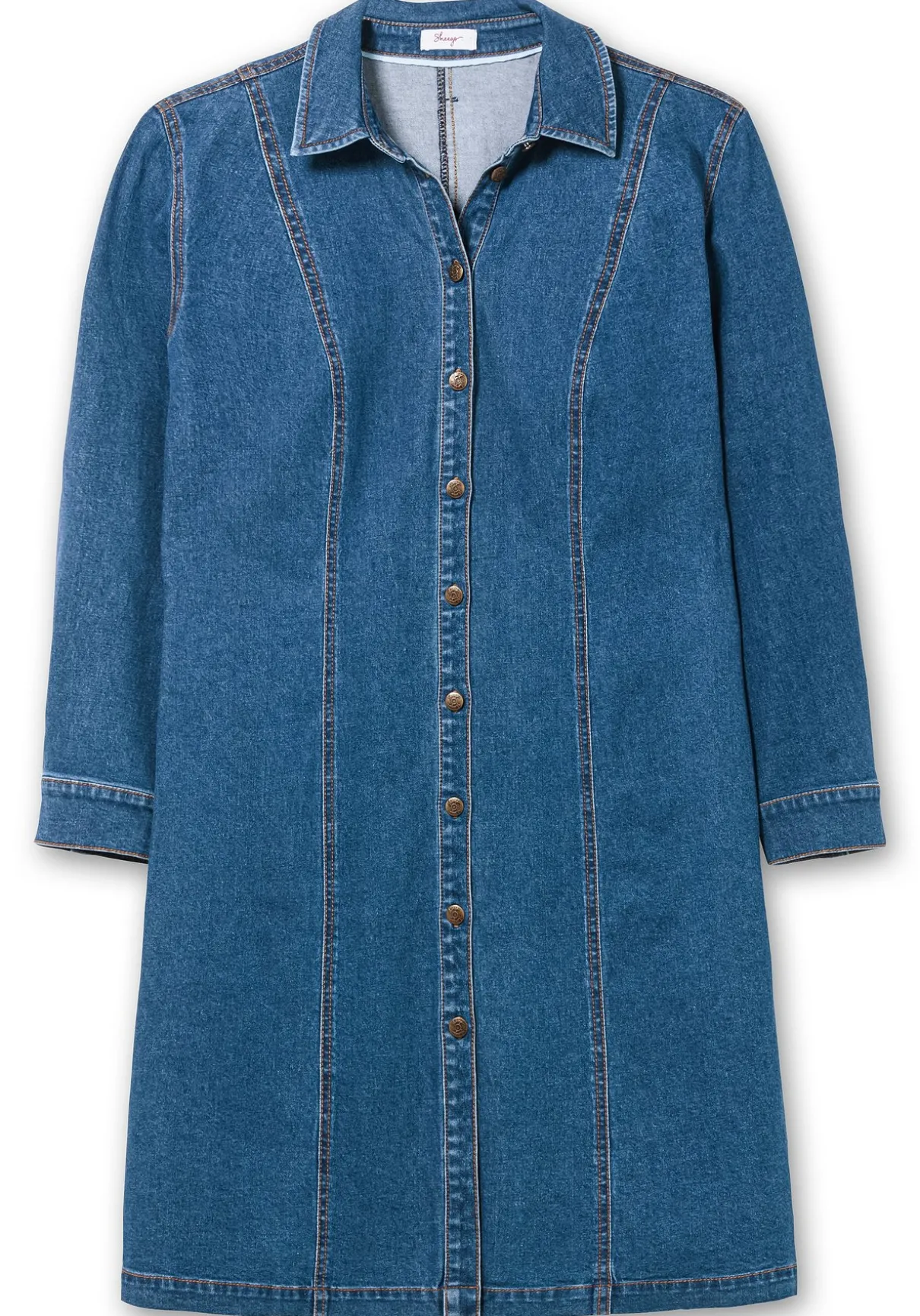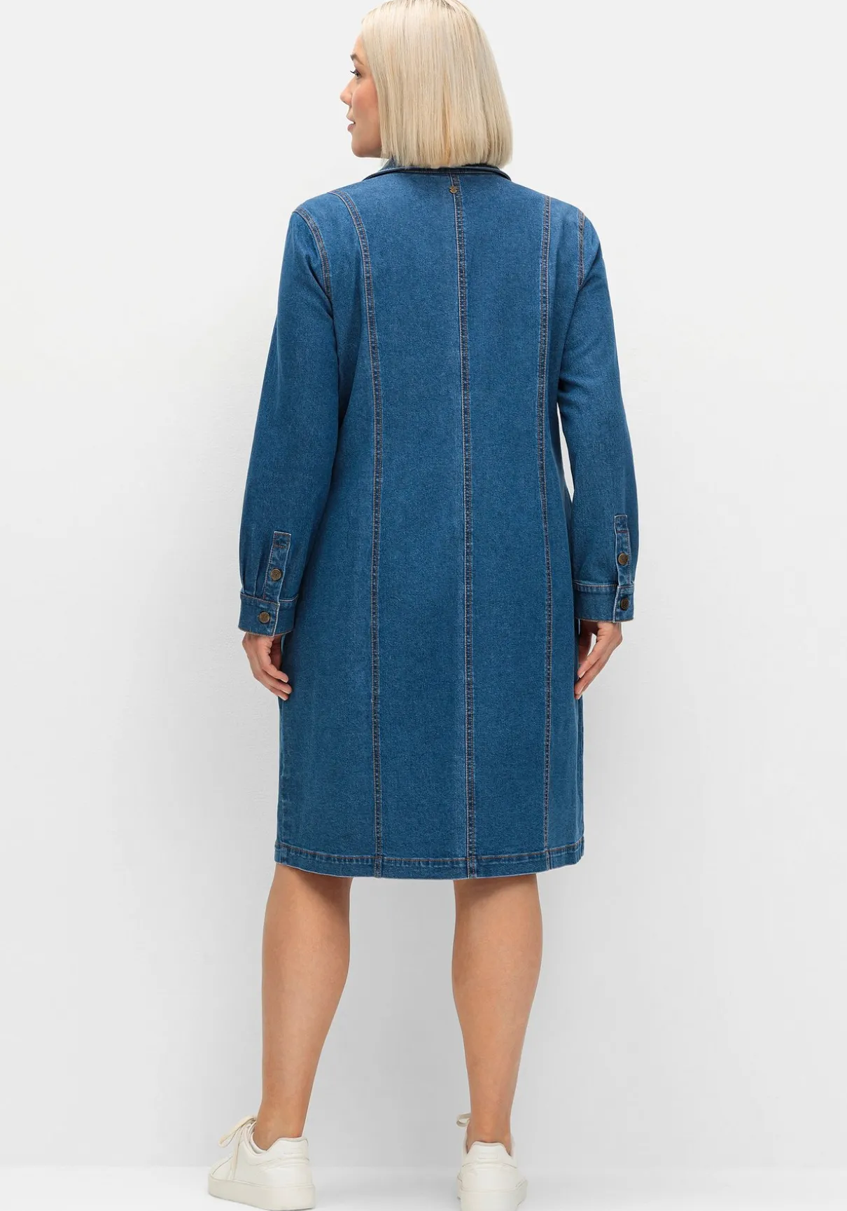 Hemdblusenkleid aus Denim. Hemdkragen, lange Ärmel und eine durchgehende Druckknopfleiste verleihen dem Kleid einen klassischen, unkomplizierten Look. Die Manschetten können mit zwei Knöpfen verstellt werden, auch die Eingrifftaschen in der Seitennaht bieten Tragekomfort.