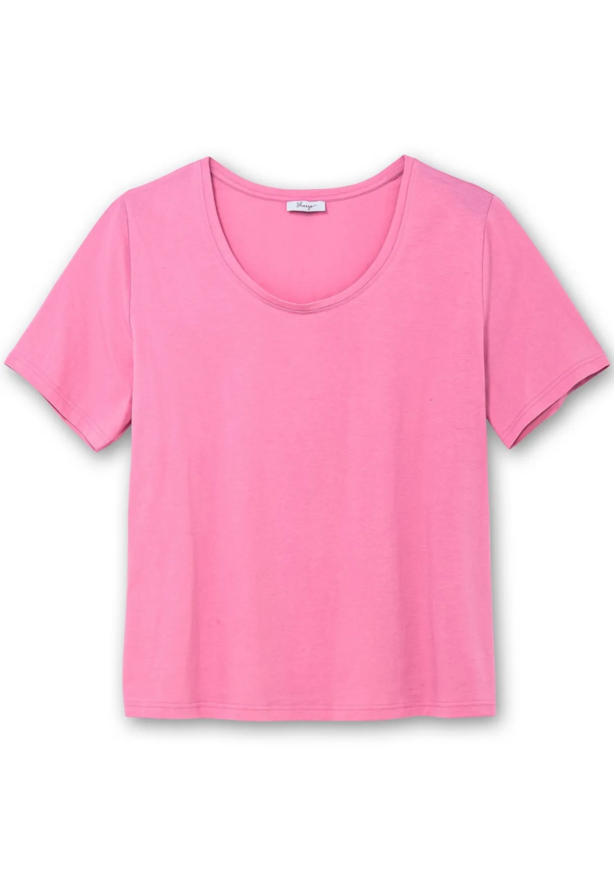 Shirt in leicht elastischer Qualität. Der klassische Rundhalsausschnitt und die halblangen Ärmel machen den unkomplizierten Style vielseitig einsetzbar. Der leicht taillierte Schnitt betont dezent die Figur, während der gerade Saumabschluss den cleanen Look unterstreicht.