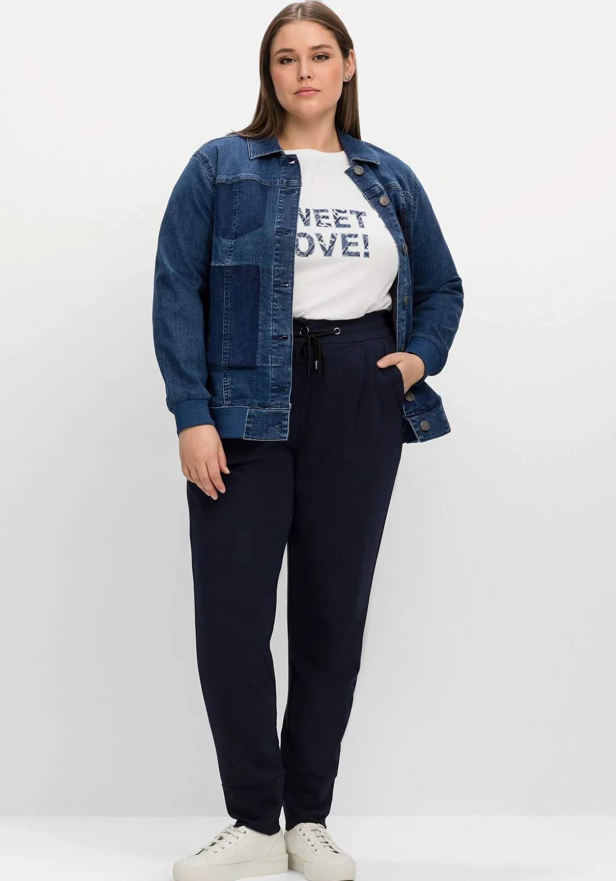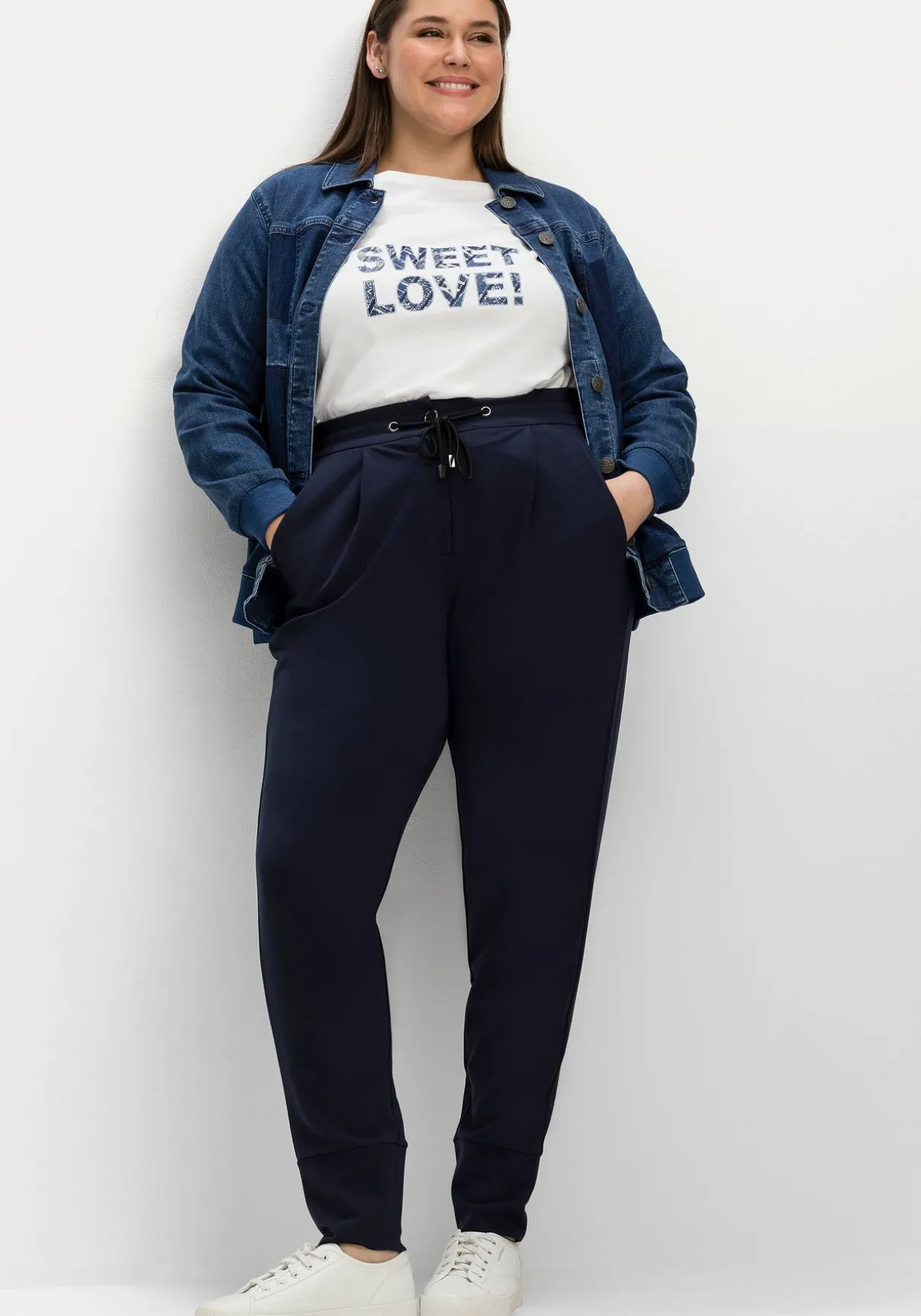 Joggpants mit breiten Bündchen am Saum. Der bequeme Schlupfbund, der mit einer Kordel in der Weite reguliert werden kann, ergänzt den sportiven Look. Während sich vorn seitliche Eingriffstaschen befinden, sind hinten Taschen aufgesetzt. Zierknöpfe dekorieren den Bund.