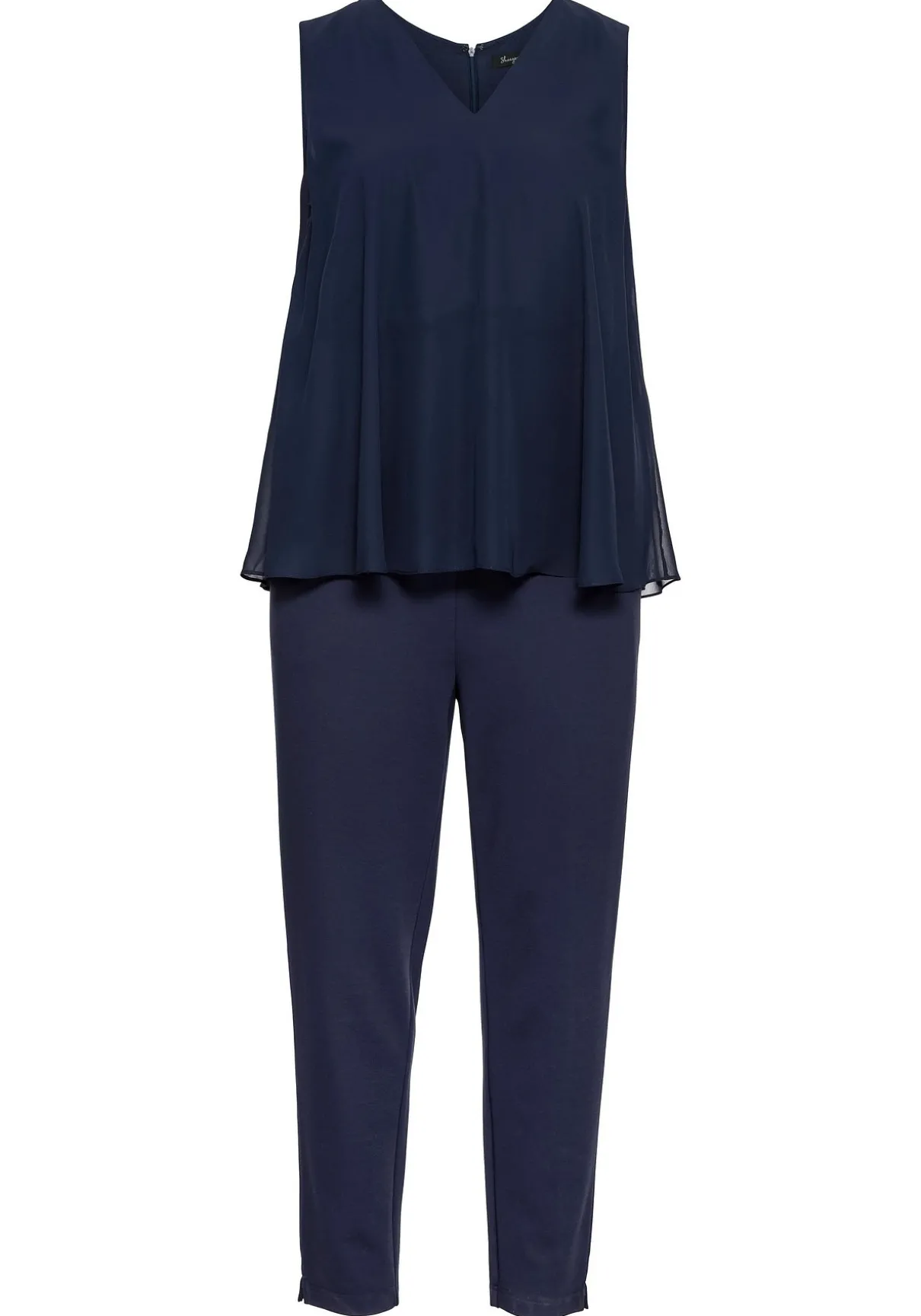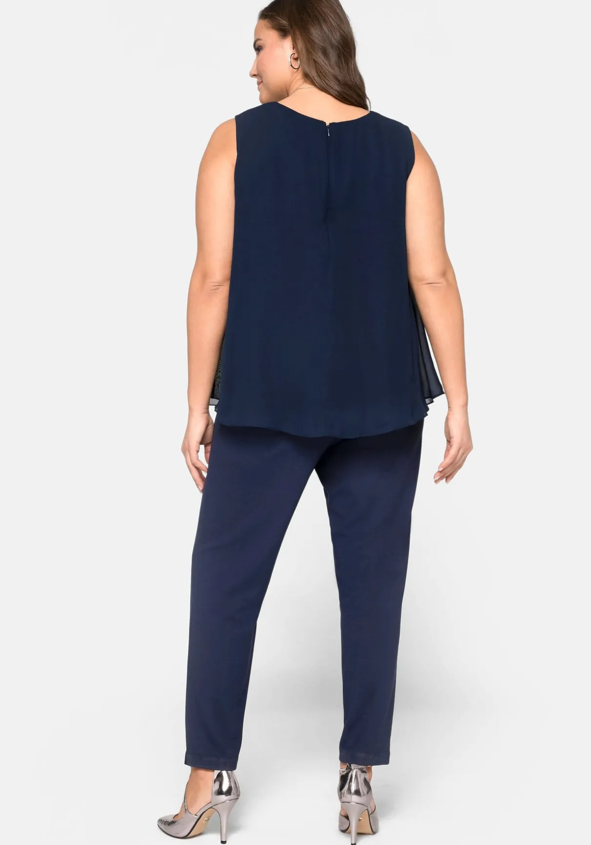 Jumpsuit im Lagenlook. Über den ärmellosen Overall aus elastischem Viskosejersey fällt ein Oberteil aus fließendem Chiffon. So entsteht die elegante Double-Layer-Optik. Seitlich in der Naht besitzt der Style Taschen, in der Taille sorgt ein Gummizug für den bequemen Sitz. Schließen lässt sich der Jumpsuit durch einen nahtfeinen Reißverschluss im Rücken. Perfekt für Hochzeiten und Sommerpartys!
