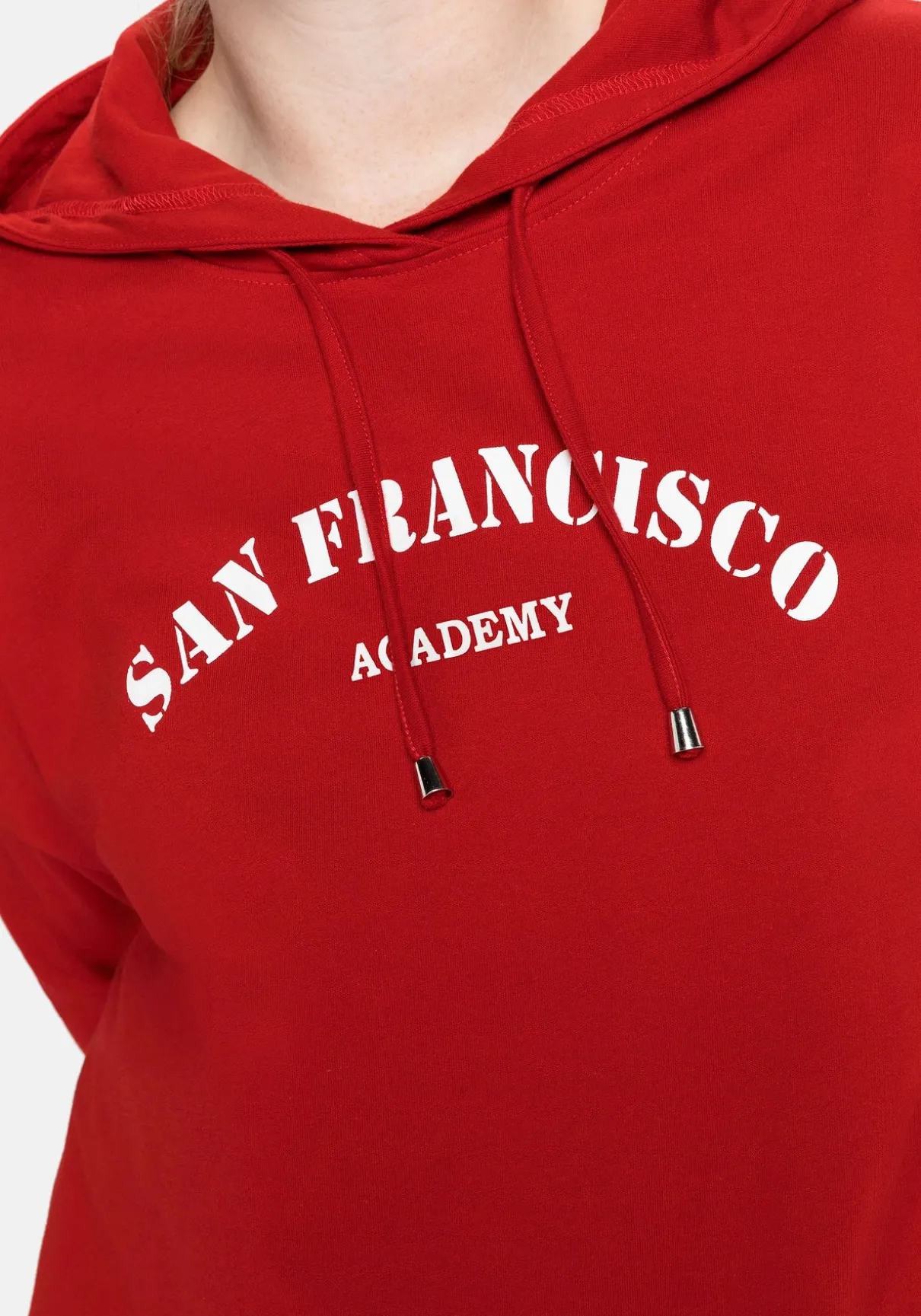 Kapuzensweatshirt mit Tunnelzug und Rundhalsausschnitt. Eyecatcher ist der Frontdruck, der dem Oberteil eine lässige, sportive Note verleiht.