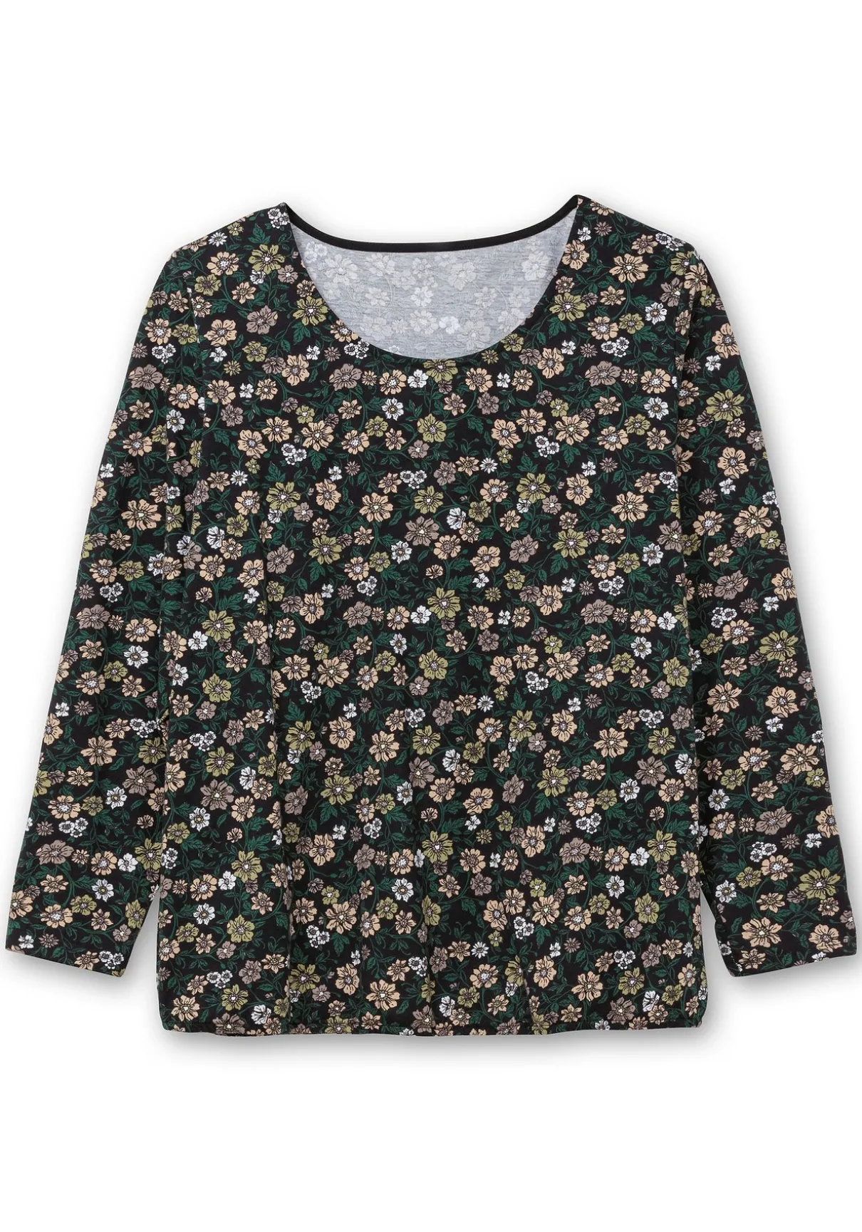 Shirt mit langem Arm. Der hübsche Blümchenprint sorgt auf den ersten Blick für gute Laune, ein klassischer Rundhalsausschnitt ergänzt den unkomplizierten Look. Der bequem sitzende elastische Saum gibt dem Shirt einen schönen Fall und mehr Weite im Bauchbereich.