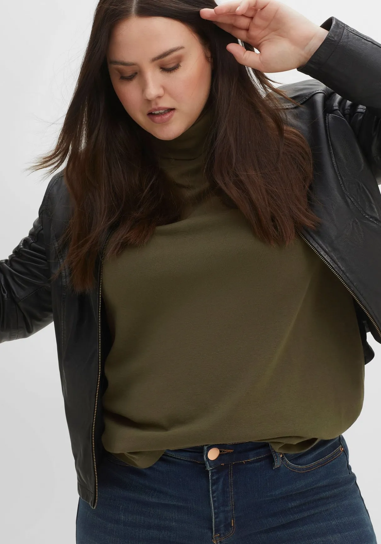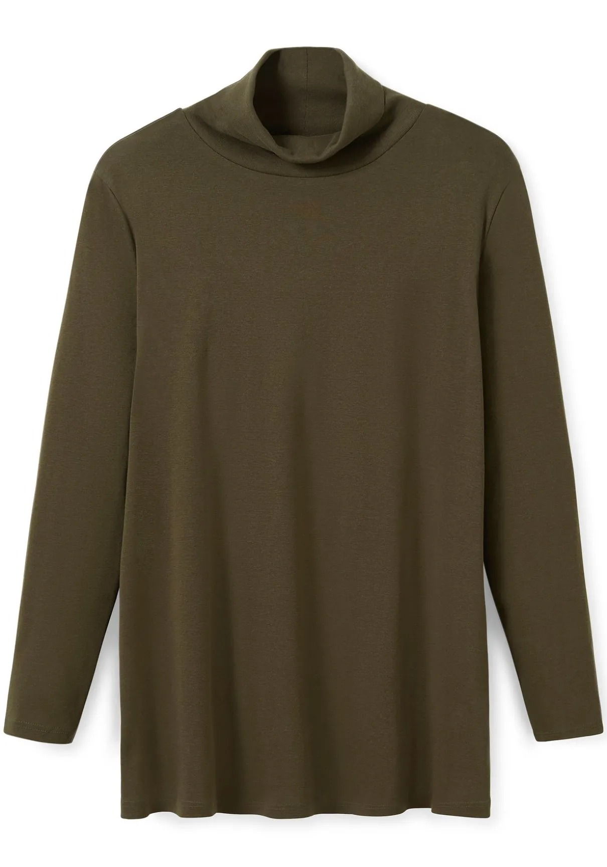 Langarmshirt mit Rollkragen. Die ausgestellte Form macht den schlichten Style zum unkomplizierten Kombipartner – ideal zu figurbetonenden Unterteilen.