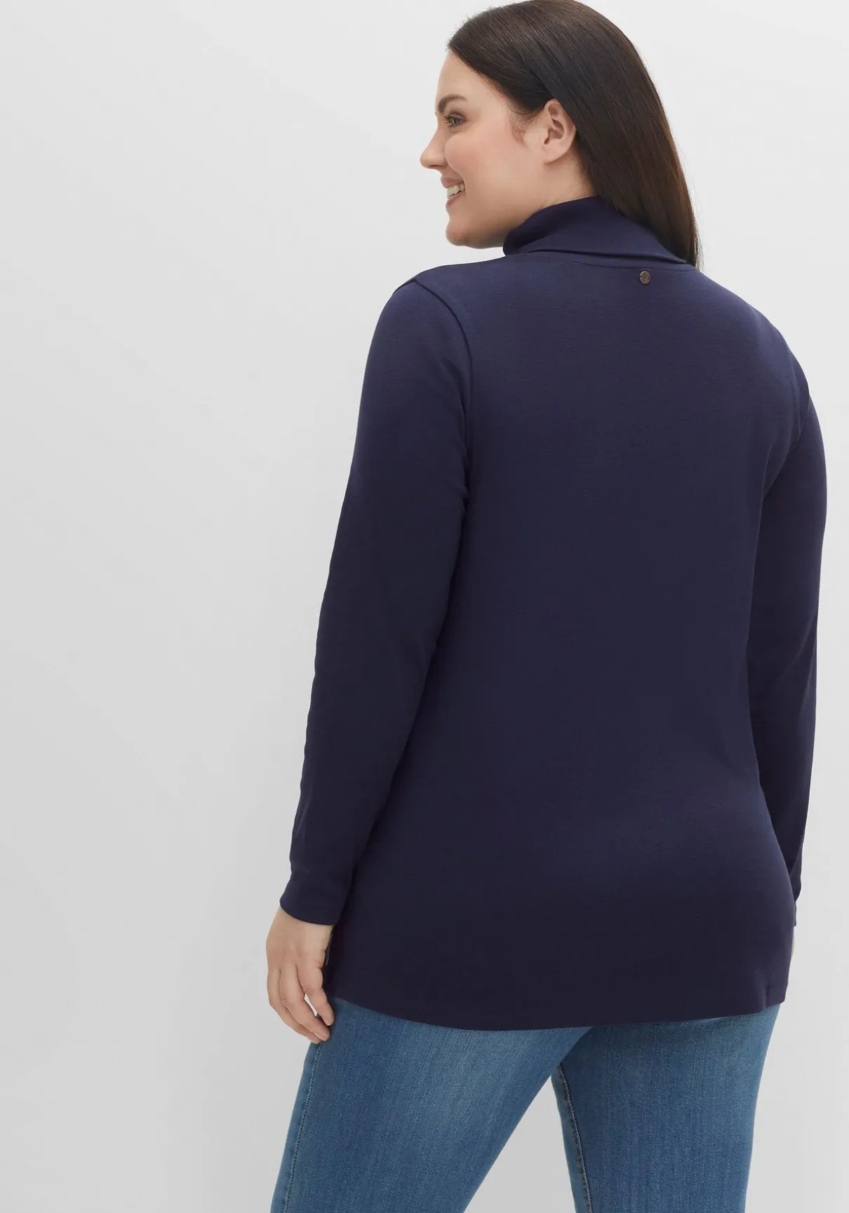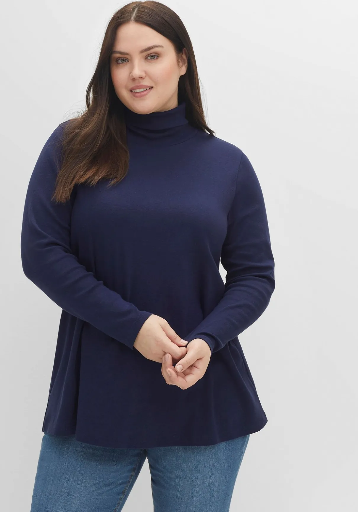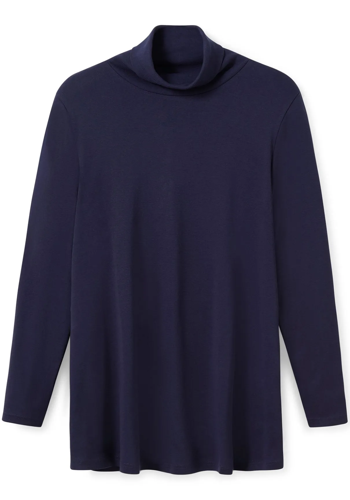 Langarmshirt mit Rollkragen. Die ausgestellte Form macht den schlichten Style zum unkomplizierten Kombipartner – ideal zu figurbetonenden Unterteilen.