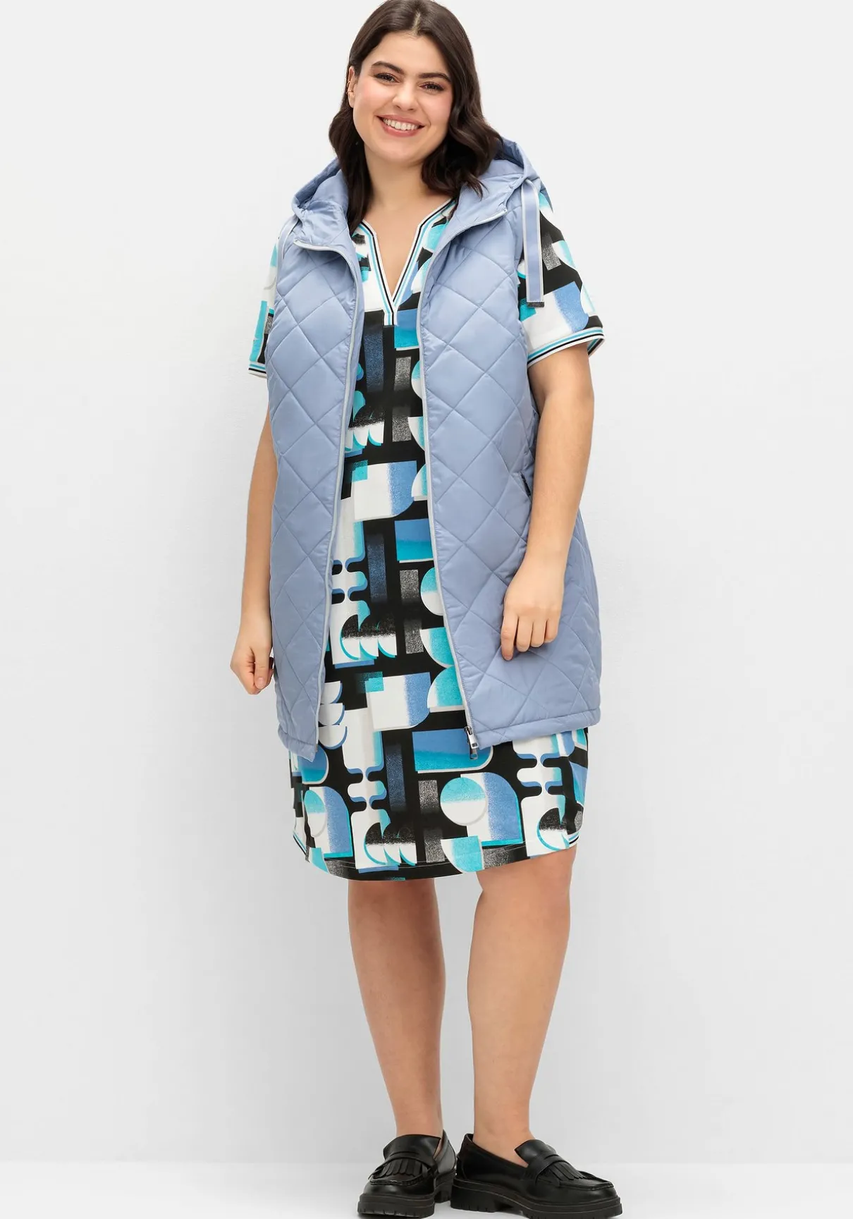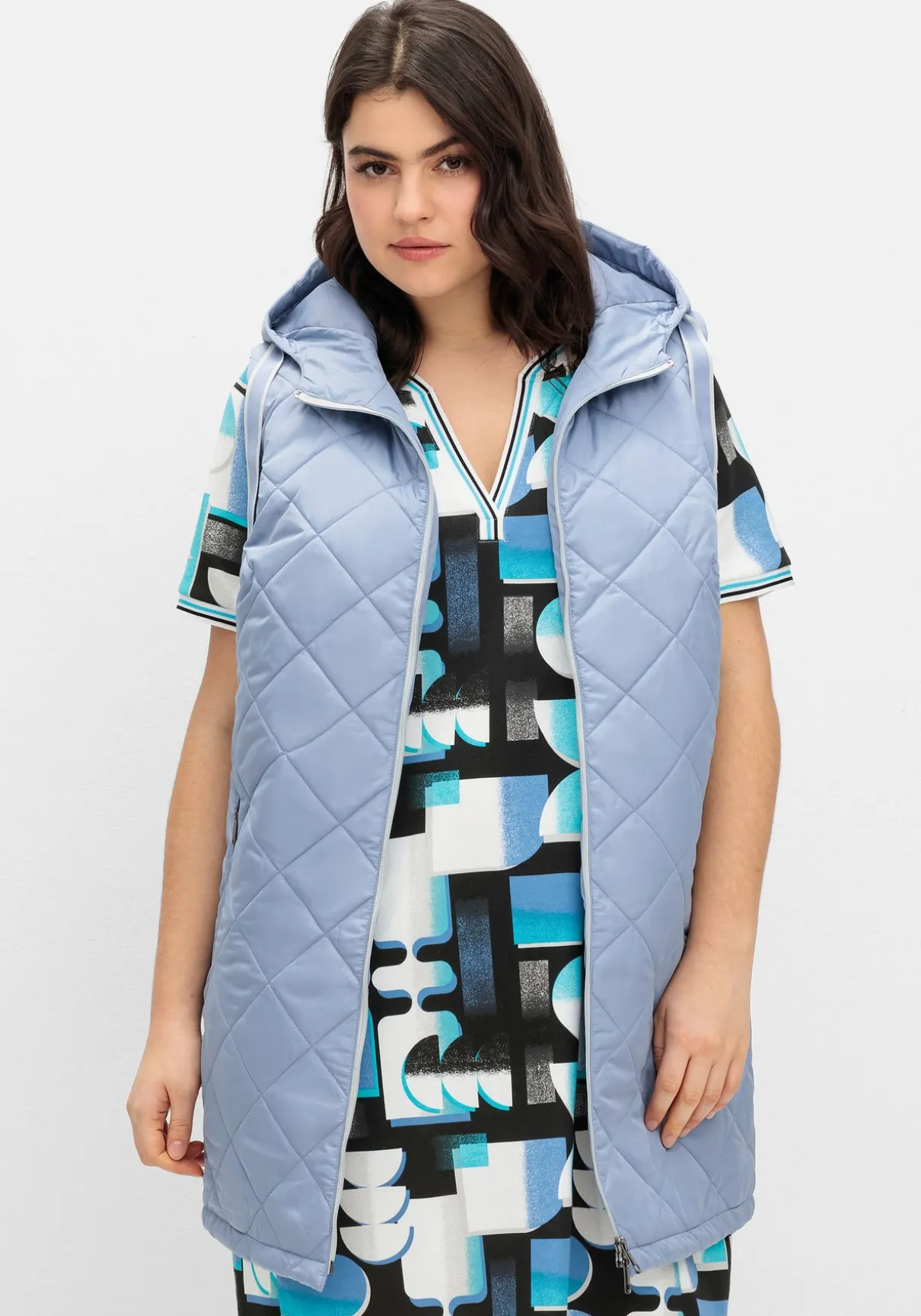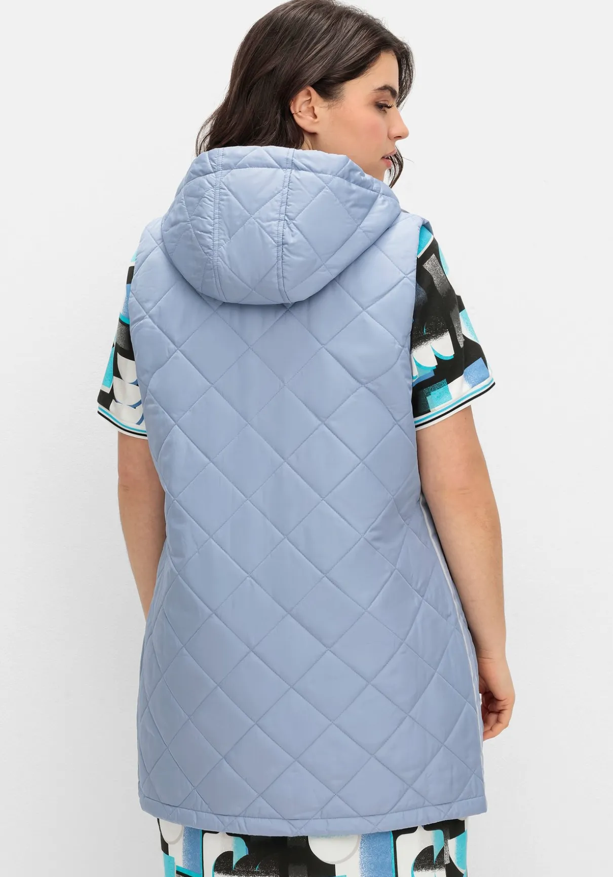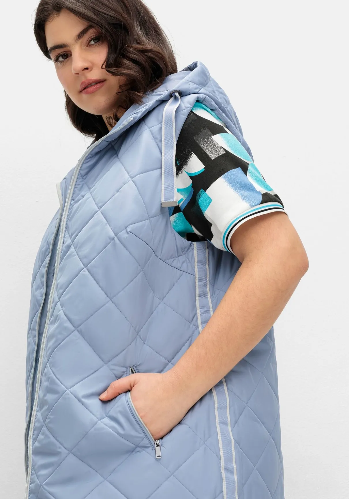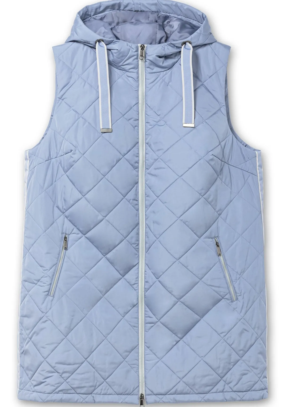 Steppweste mit Kapuze und Bindeband. Die Rautensteppung verleiht der Weste eine dynamische Optik, kontrastfarbene Details setzen modische Akzente. So wird der seitliche Galonstreifen zum Eyecatcher, gleichzeitig besitzt er einen streckenden Effekt. Für optimalen Tragekomfort und viel Bewegungsfreiheit sorgt der auch von unten zu öffnende 2-Wege-Reißverschluss. Die beiden Eingrifftaschen sind ebenfalls mit Zipper zu schließen.