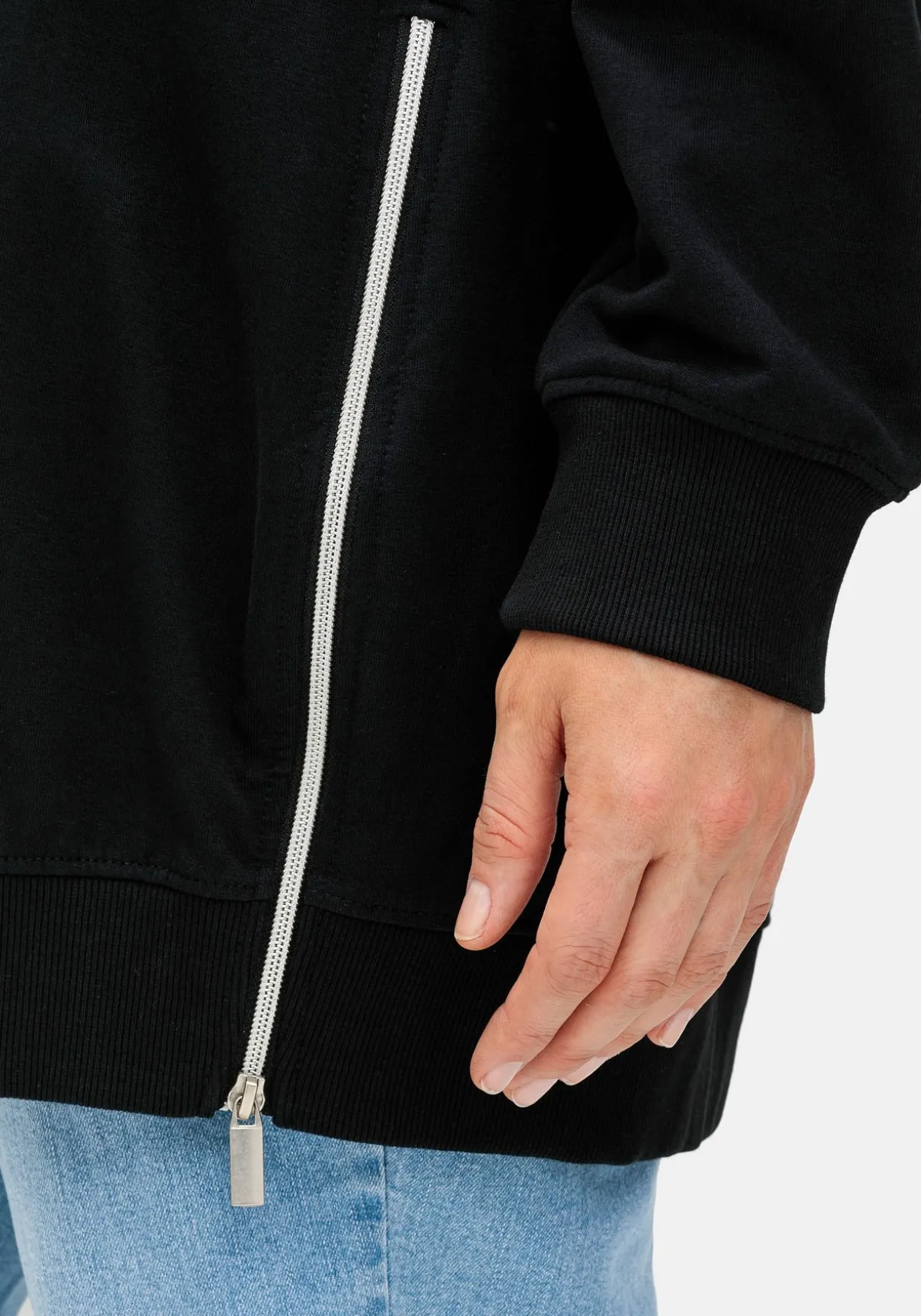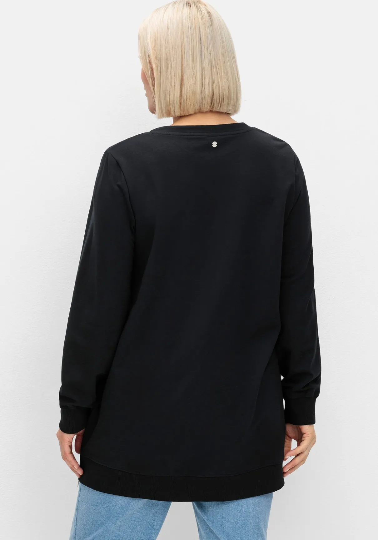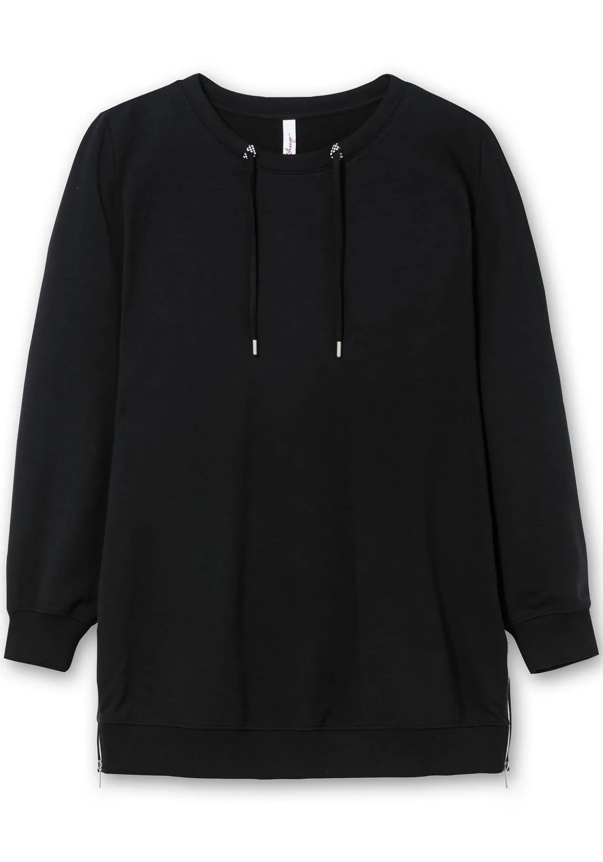 Sweatshirt in Longform. Durch die Bindebänder am Rundhalsausschnitt und die hohen seitlichen Zipper erhält das Oberteil einen lässigen, modernen Look. Für mehr Bewegungsfreiheit können die Reißverschlüsse auch offen getragen werden. Sportives Finish sind die bequemen elastischen Bündchen an Ärmel- und Saumabschluss.