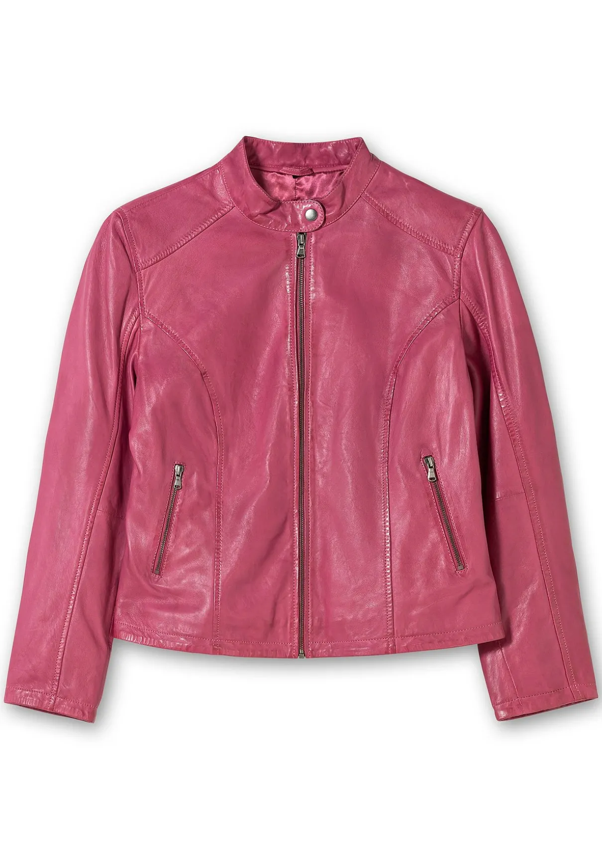 Lederjacke aus weichem Lammnappa. Der charakteristische Biker-Schnitt mit Stehkragen und durchgehendem Reißverschluss macht aus ihr ein zeitloses Must-have. Der Stehkragen lässt sich mit dem Druckknopf verschließen, die beiden Eingrifftaschen vorn sind mit einem Reißverschluss versehen. Dekorative Teilungsnähte geben der Silhouette die typische Form.